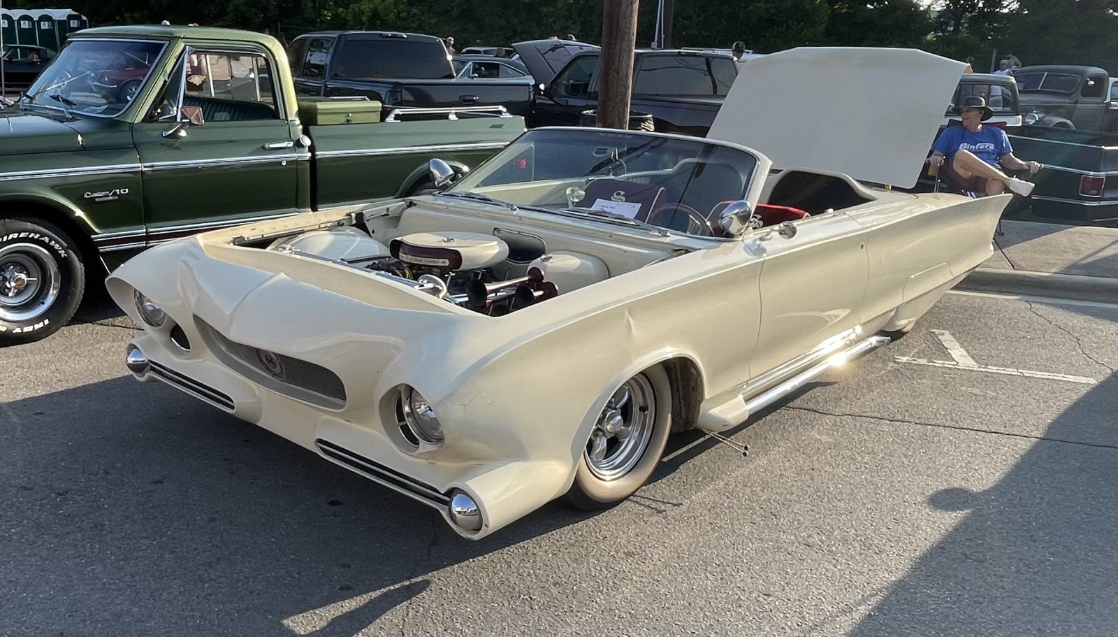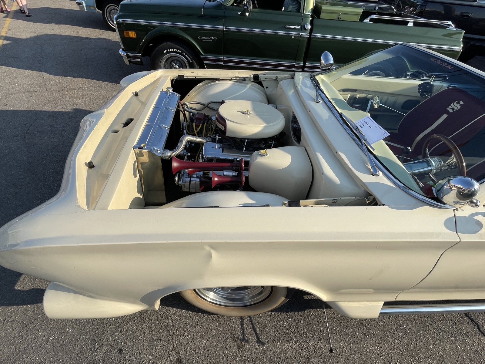 It appears the vehicle started life as an early 60’s T-bird. I see what looks like Mopar quarter panels grafted on, also elements of several other vehicles.