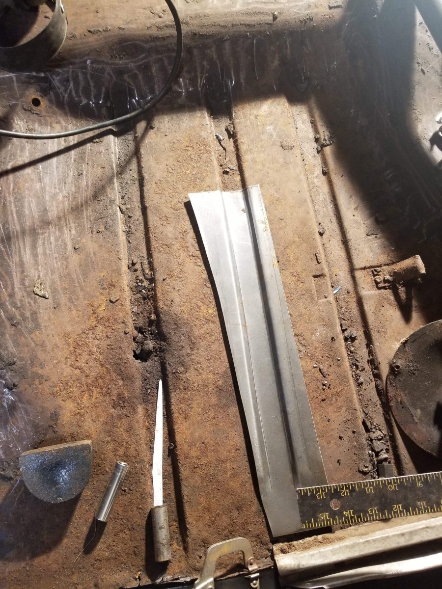 Not much to report. I’m currently in the process of building a new house....and a bigger shop (if the budget permits) and that is taking up most of my spare time right now. I did manage to start repairs on the drivers inner fender. So far I’m happy with the way it is turning out. But I’m debating about building a custom set of inner fenders....mainly for a smooth cleaner look. I have made a little progress on the floors. I made a patch for the rear floor. I still need to clean up the body brace under it before I can weld it in. Next will be working on the trans tunnel and toe board. Progress is slow right now but some is better than none.