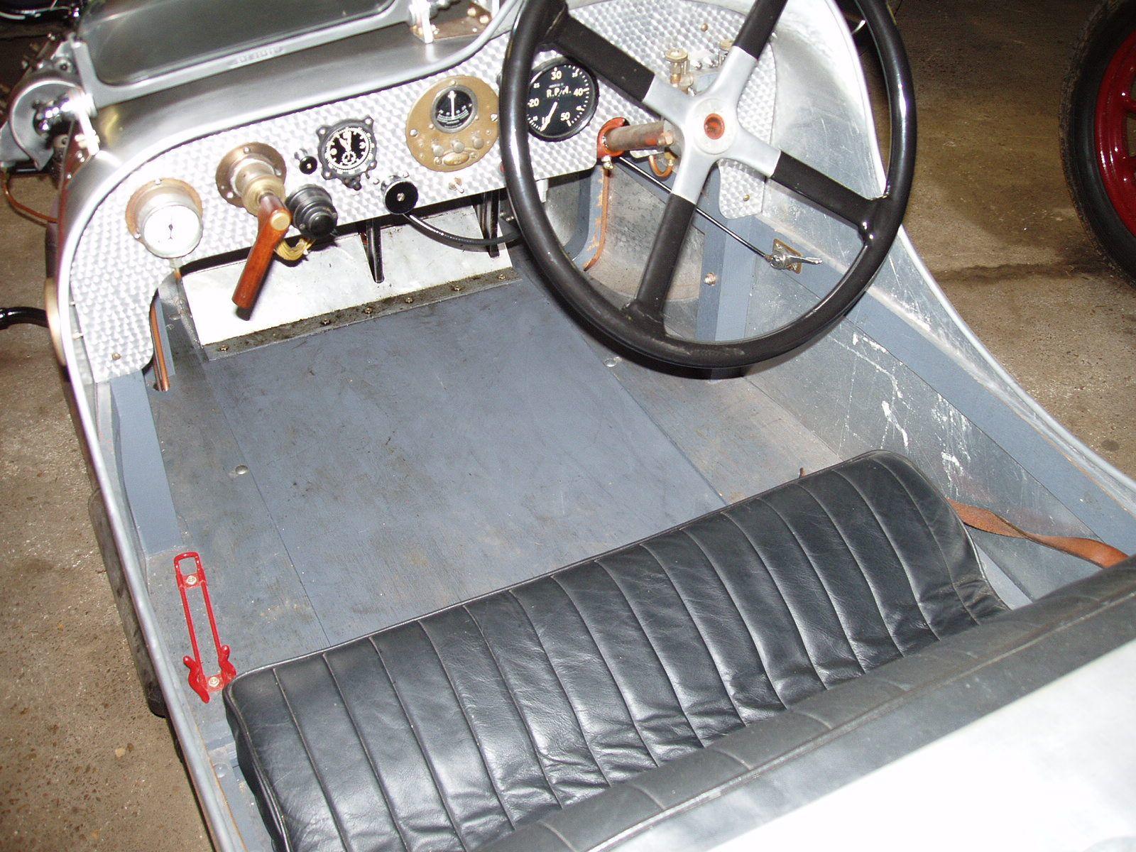 Unident photo from another site. I find it interesting that the engine in this car has been, seemingly, offset to the left IOT counter the driver's weight. The foot box area is also much larger and it sure makes the steering linkage look easier to design! I've thought about doing this (but to the right side of the chassis) on my '29 A Coupe project - which will also have an I-4. Perhaps not as much offset that this car has, but helping out with the both the foot box and steering shaft seems like a good thing here if there is room to still fit the rest of the junk under the hood / sides.