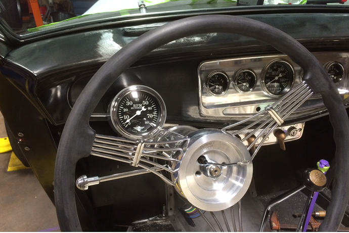 Back to steering wheels. I had a Caddy wheel in my in my '46 coupe. My interior was white and the wheel was black, as was the shift knob and the interior paint. It all seemed to go well together to me. Of course I was pretty twisted most of the time back then I may not like it today.
