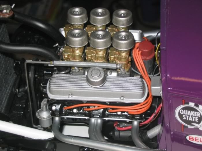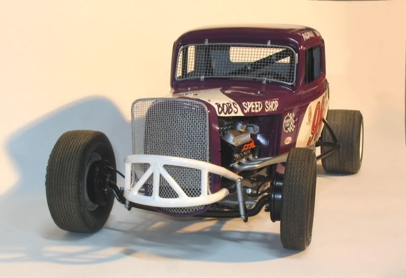 Nice T-bolt, Johnny. I have one of those waiting to be built. I see some nice pics from shows here. I especially like the salty 606. Here are some shots of my 1/8 scale 3 window early modified dirt car. A lot of the parts were scratch built. the body is an aftermarket resin from edeuce.com.