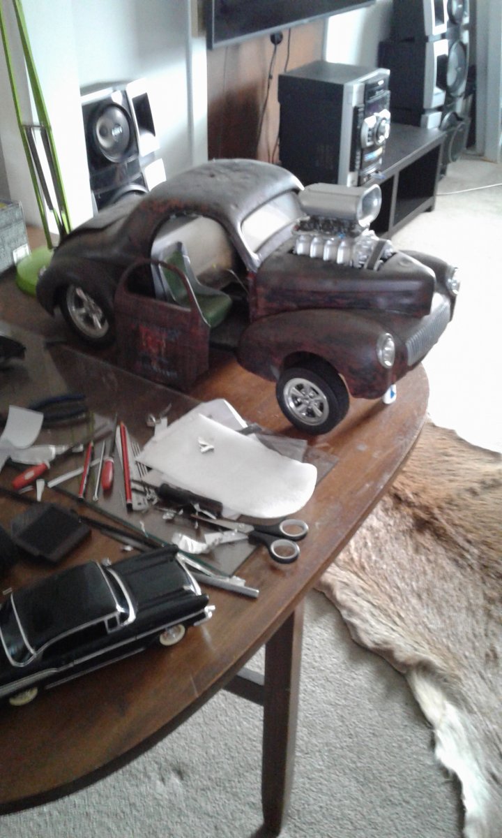 The 34 Ford 5 window 4 cylinder is done,if I had a way to replate the grille I would have tried to take the V8 emblem off.