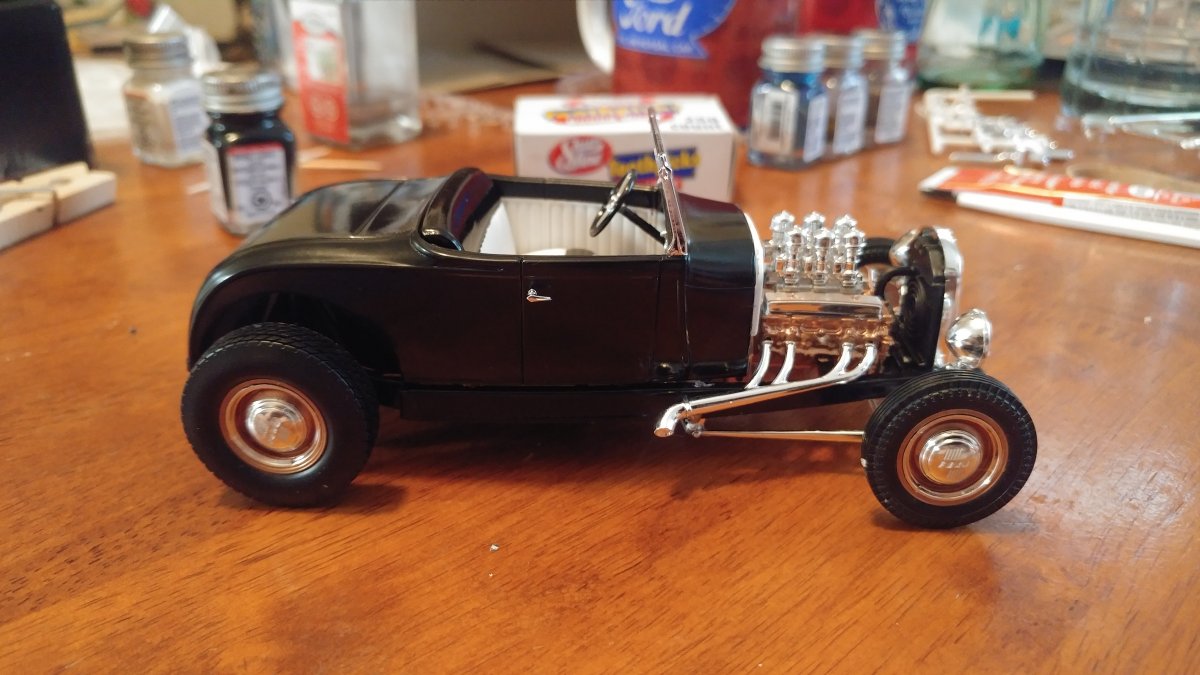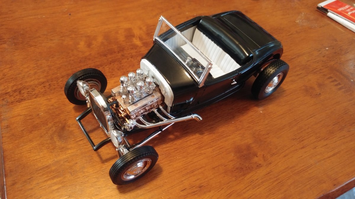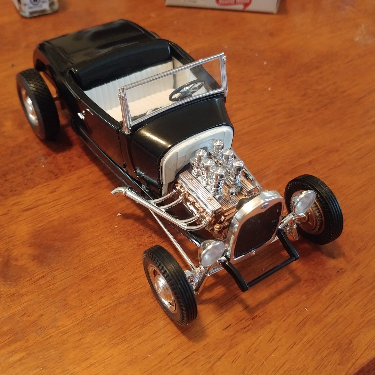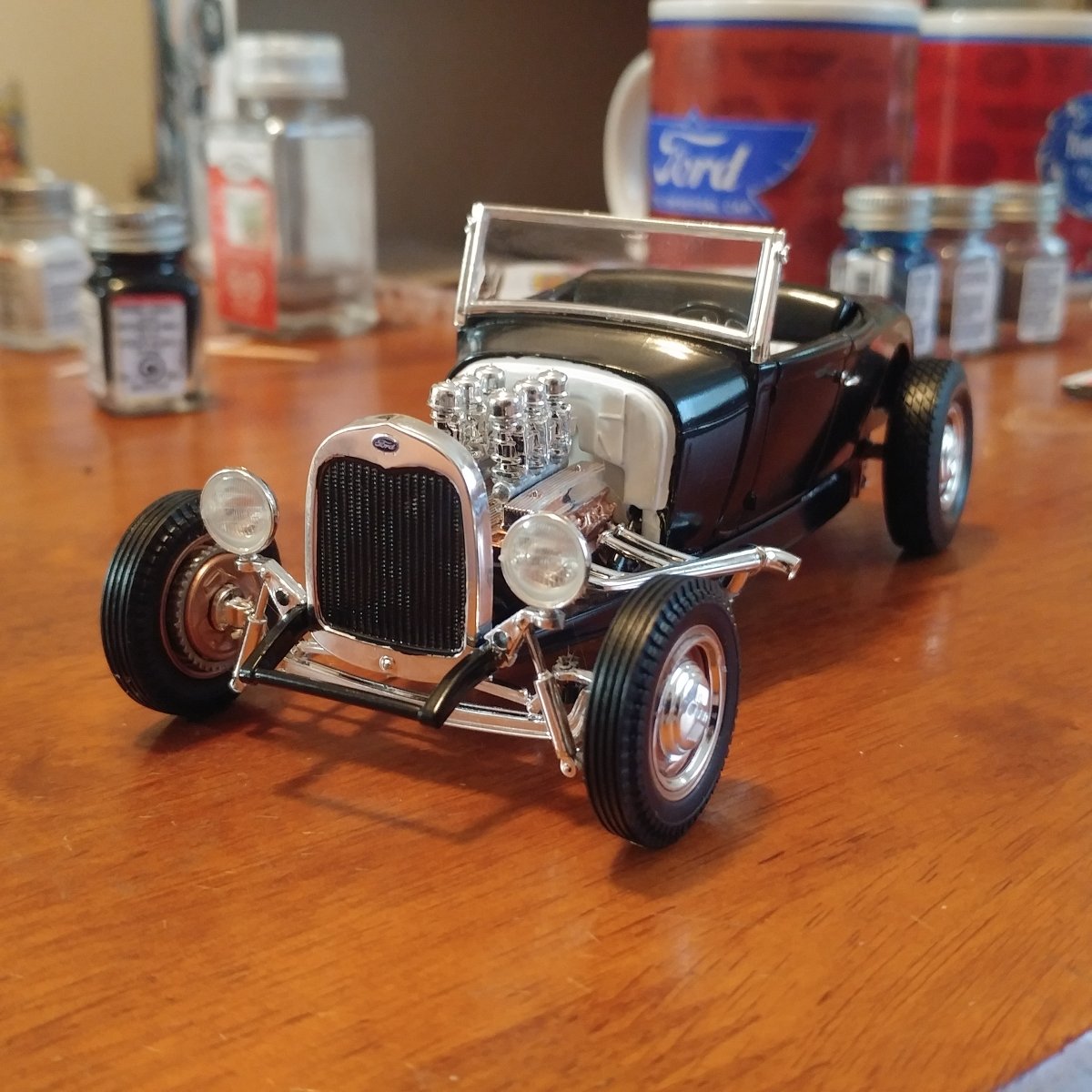 Its sunday! Let's get this rolling! I just finished the Revell 1/25 scale '29 A roadster, complete with a Buick Nailhead. I did a little paint detailing on the hubcaps and between the find on the valve covers and valley pan. Overall it was a fun little kit to build!