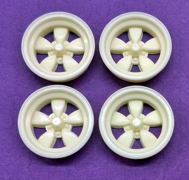 Those look like narrow copies of the racing 2 piece magnesium wheel that came in the AMT '55 Corvette kit which American Racing only made in 10" or 11" wide