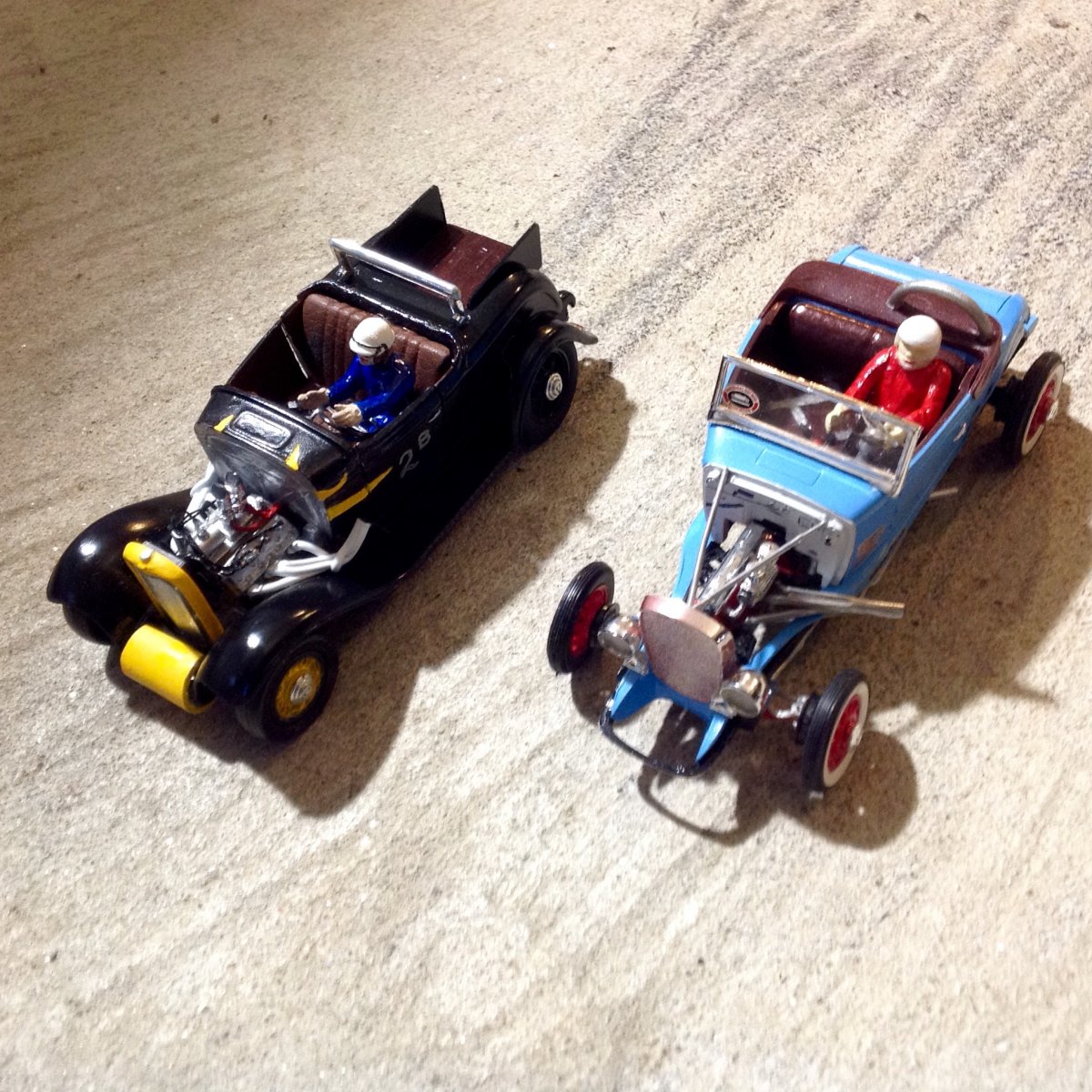 Here are some stalled projects I am trying to get done,the 32 Ford 2 door sedan is a crappy AMT version that should have been thrown in the trash but got it looking better. The 28 roadster was built out of parts