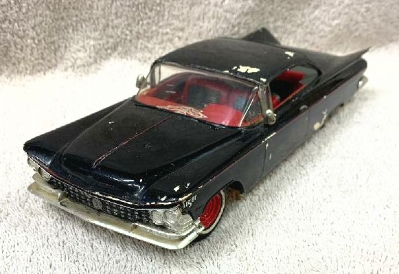 Well played quick......point made and received.....I " like" it.....I would "like" it more times if I could. Really like the White Buick, black rims and narrow WW's very Kool. I cleaned and touched up the 59 "Tiger" Buick a little...thought I would just touch up the black in a few spots where it was flaking off......each time I would feather the edges a little , more paint would come off...after chasing the continuous flaking edge about 80% of the car got painted with lacquer and a brush....finally said to hell with it and rubbed it out gave it a little wax called it good.