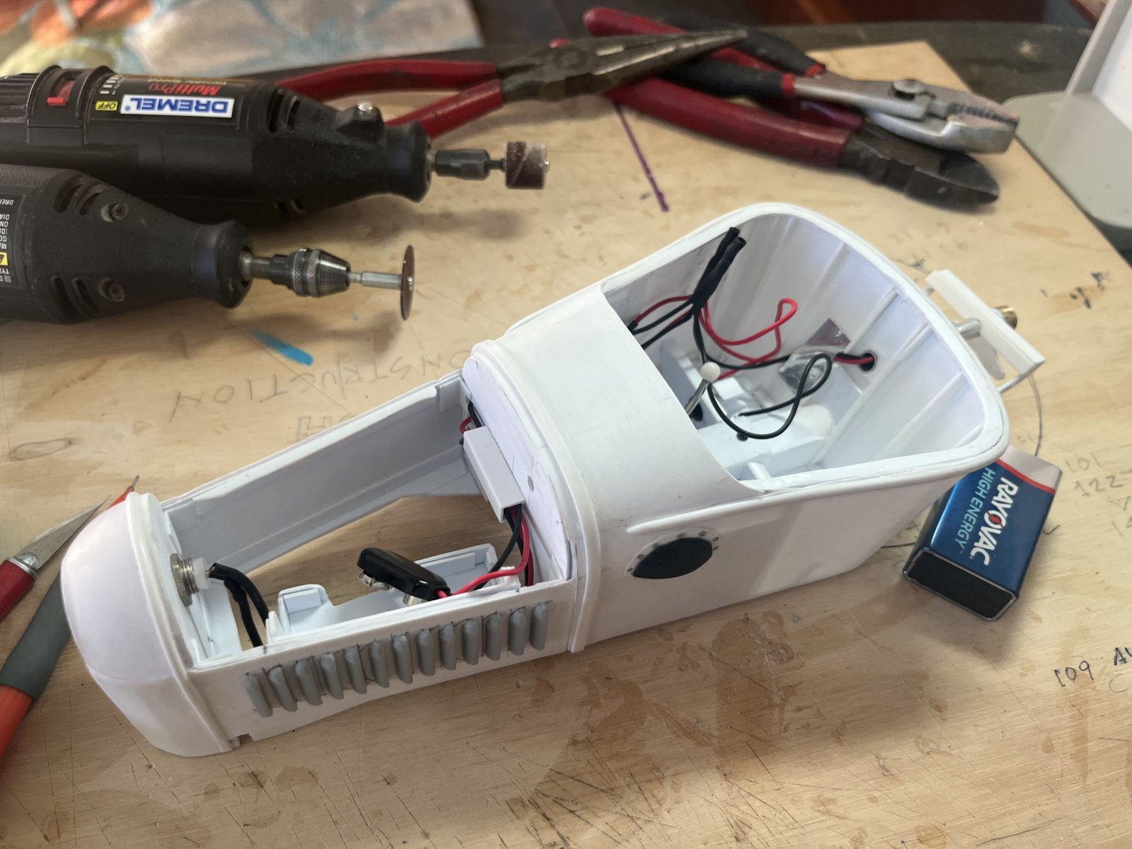 Two steps forward and one step back. The 9v battery which powers my lights drains down very quickly to goose egg, even when the lights are switched off. Damn. I am no electronical engineer. Besides I don't trust anything that I can't see coming. In my book, electrons are not to be trusted. I've reasoned the best fix (that I can wrap my brain around) is to install a quick disconnect switch at the battery. I found on eBay some vintage radio blade switches which should fit under the hood, next to the battery. So just like the real thing, my race car will have a quick disconnect. That's the plan anyway. Wish me luck...
