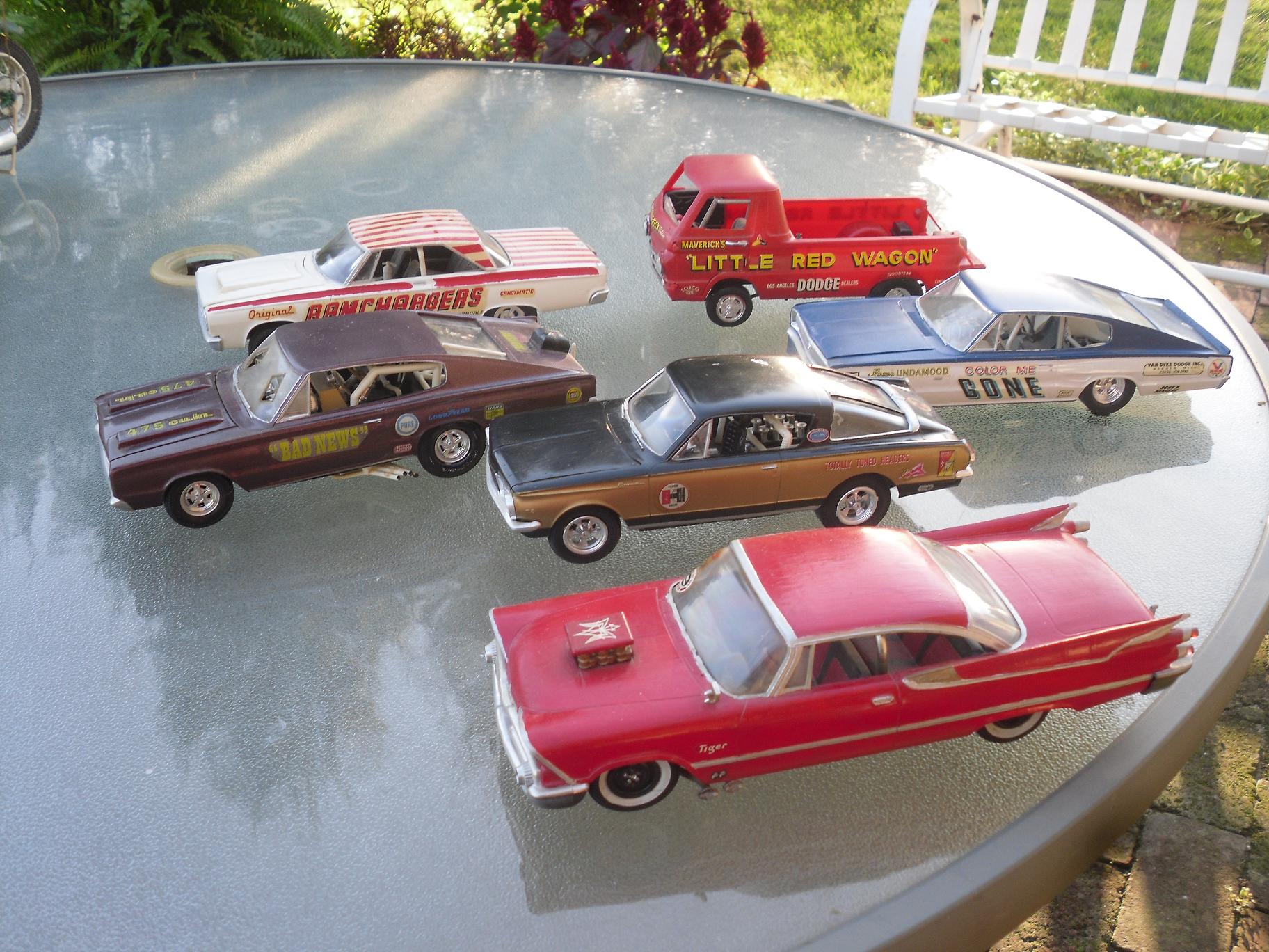 I have posted some pics on the other sunday models thread and will put them on here as well. It sure would be nice if we could consolidate the other threads all into one. Seems we've had that conversation before. I'd be willing to have the moderators delete all the other stuff if it meant all of us being on the same page. So, all that said, I have pics of some cars a friend built a long time ago. He is now in his 70's and doesn't want these to just keep sitting in the attic. He gave them to me and I told him I would see if there's any interest in them. Take a look and let me know if I should sell them, give them away or what. I'll keep the Triumph bike for myself to keep an old harley company. If they were old Ford hot rods I would be interested in them as well.