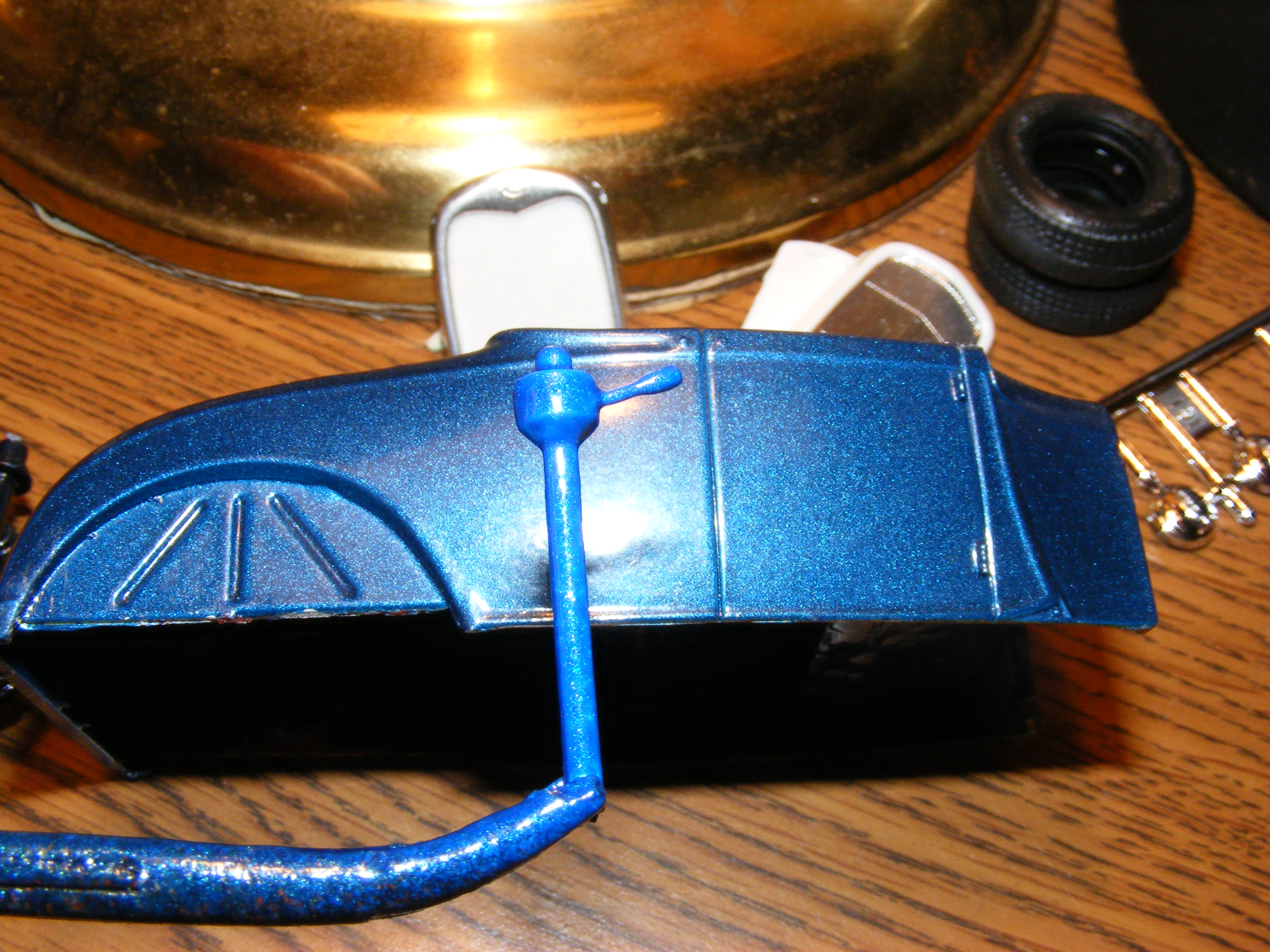 Thanx wojojo. I hadn't noticed the tweezers. The body was painted with Testors white enamel ( back when it would cover ) with Testors Saphire Blue Metallic enamel. Been trying different bases with Blue Pearl. No luck. The tweezers/clamp is that brownish color ya get with paint build up..... Brown may be next! Thanks again.