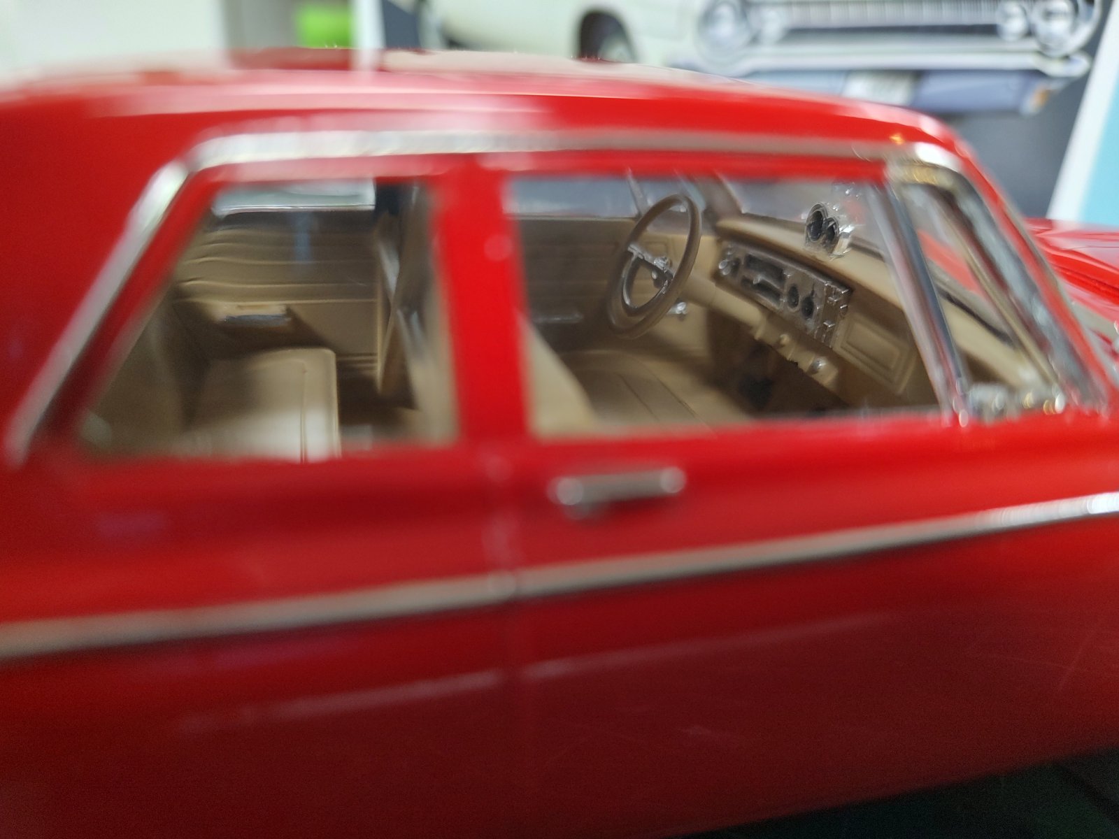 Finished this Lincoln Futura in Dec. It's a fiddly kit. Chrome wheels, steering wheel and antenna are well done. Bumpers and side trim not so much. Parts Pack tires. Vintage Cal Custom silver lacquer base coat with PPG clear. The canopy is flawless. I had STS Decals make the "FUTURA" decal on the hood. Recommended! Notice Cosmo and Fifi's photo etched shades.