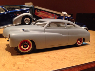 AMT 1949 merc i built years ago, chopped roof, frenched headlights and taillights,round hood corners,caddy caps, dark green paint.
