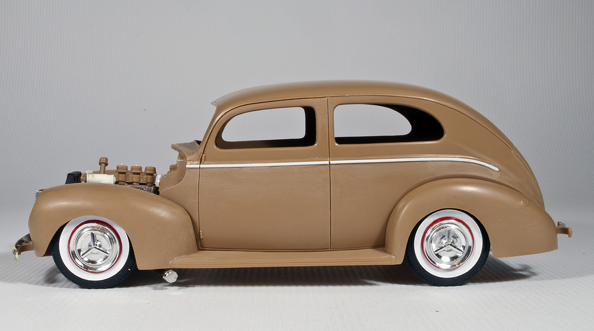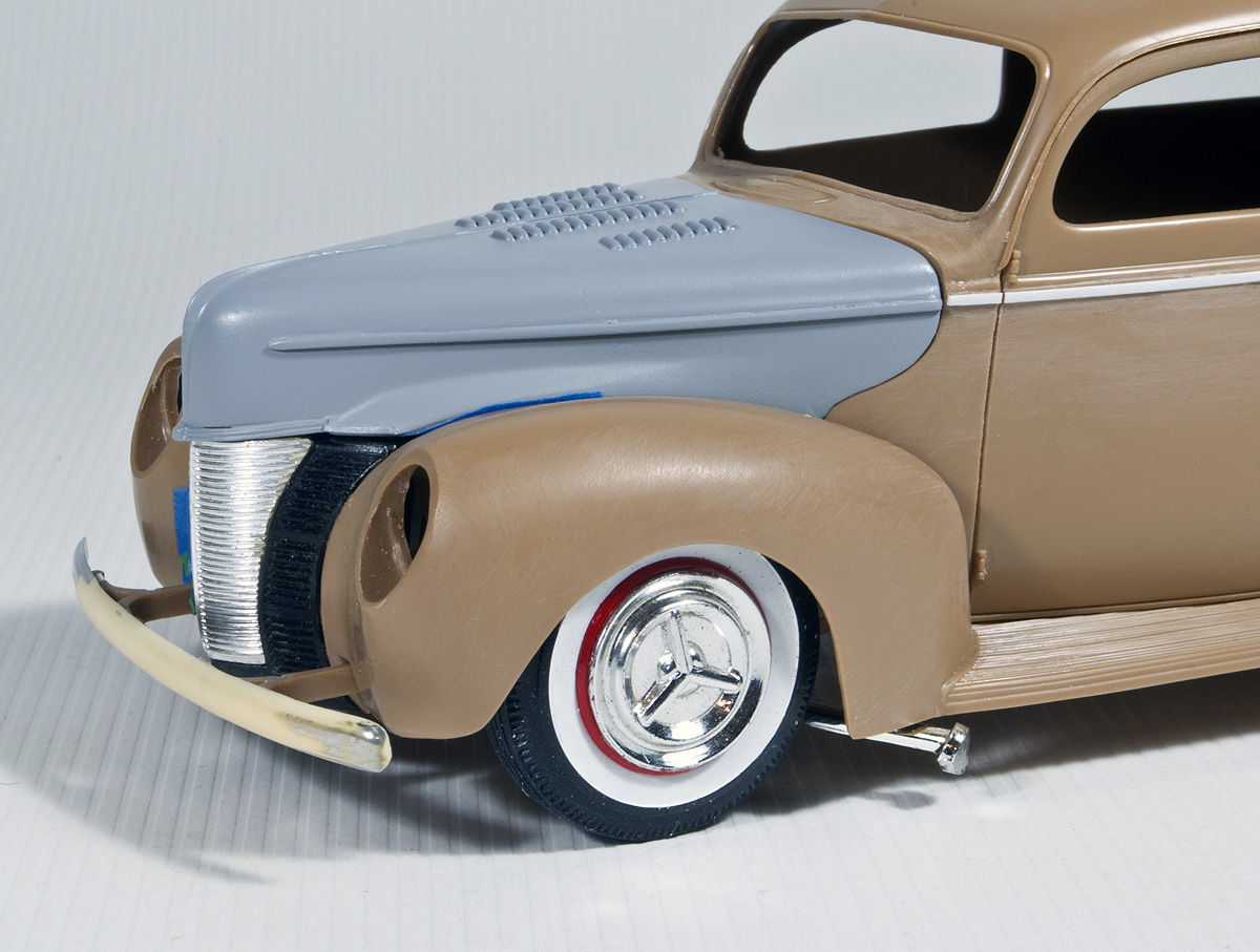 Cool. We're on page 40! What better place to post this AMT '40 Coupe I built about six years ago. Just recently swapped the old red steelies for a set of freshly replated wheels from the '40 sedan delivery kit. These look a lot more appropriate for the car!