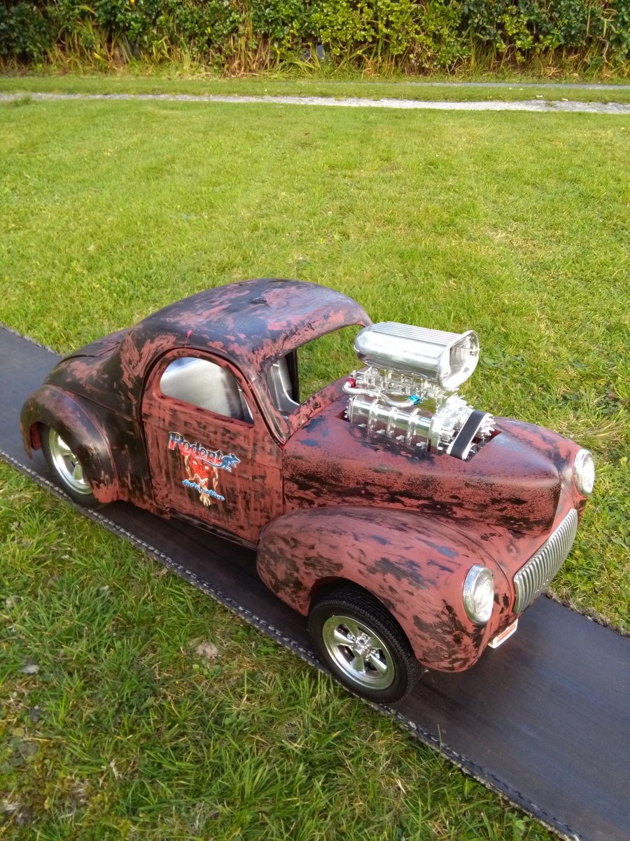 Dave, that's very cool. My week started off, being given a beat up 1/6 scale, Willys Coupe. Decided to fix it up, like an old beat to hell, rusty Gasser. It'll never be period perfect, due to it being a Street Rod, but I'm having fun with it. Here's a pic of an original, I've yet to take pics of what I'm doing, but I Think y'all will like it.