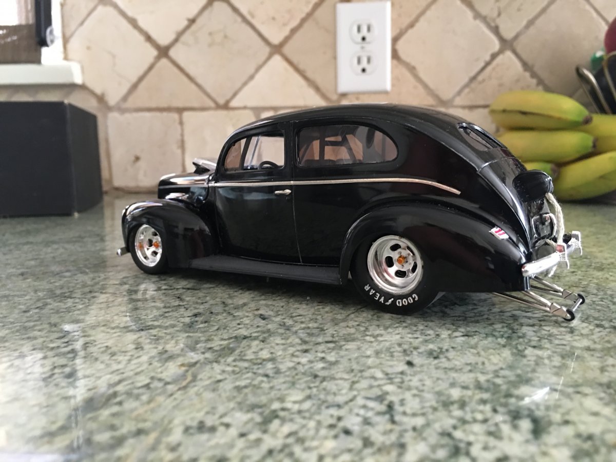 Finished the revell model a coupe, used the 40 ford dash from the revell 32 kit and a 53 corvette steering wheel and a hurst shifter from a 70 super bee other then that it's box stock