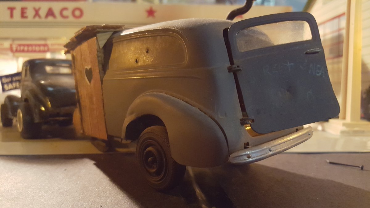 39 guy, thanks for a great start for this Sunday. Your builds are much better than I have the patience to do. Thanks for sharing. Here is one of my old builds. I had a 38 Chevy coupe and a home built camper. I built from a 36 Dodge delivery, that had been cut in haft. The famer gave it to me for free. I still have it. I also built this model of it back then too. I even added the dents, like the real one has. lol Ron...
