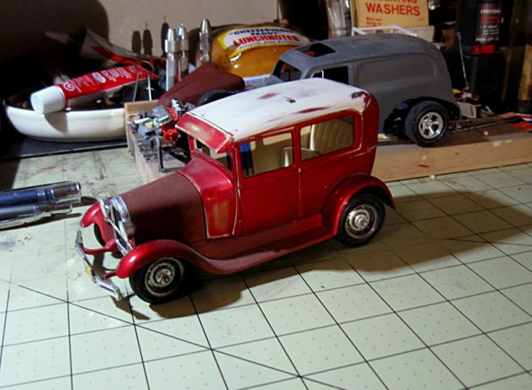Here's 2 on the front burner. '36 is a chopped resin on a Dick Tracy kit. The '48 I think is a Testors kit ( I got 2 of these, complete un-built minus motors and wheels) in a $1 parts bag. Need to re-shoot doors and hood since every piece of dust in the neighborhood landed on them. Waiting for warmer weather. Don't know what wheels are going on the '48 yet.