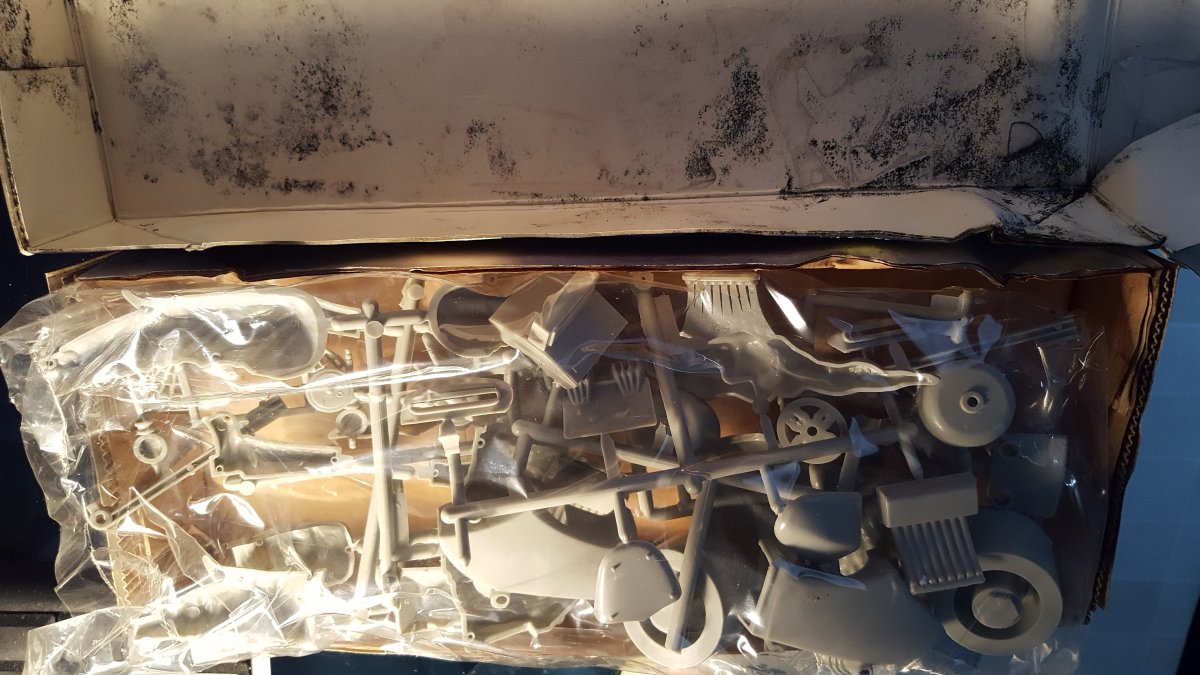 Hay, it's Sunday so where are all your cool builds? I enjoy seeing them each week. I had a birthday on Friday. So my brother stopped by with this present. He said, that he found it at a yard sale. It looked old, and is very moldy. But it can't be too old, as it has a bar code on the box. But that doesn't matter at all to me. Because models are only fun if you build them. So I plan on building it this week. And will post a picture of it here, next Sunday. Thanks Ron...