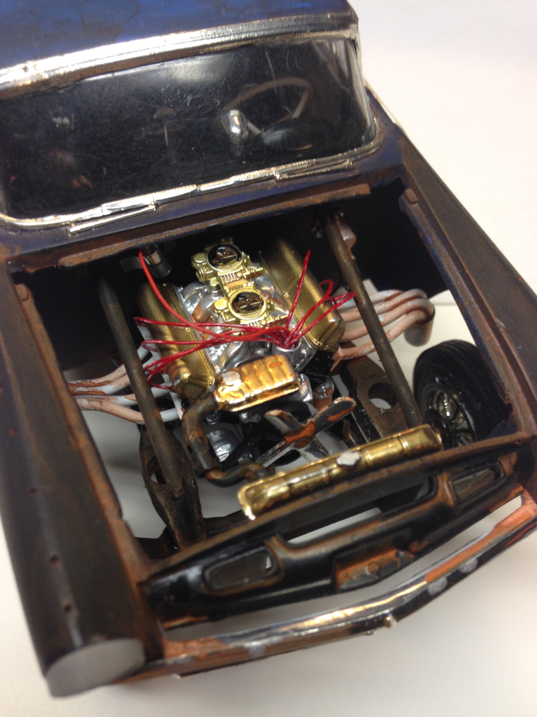Your work is all fantastic. That sedan , like stated, over the top. We should go to Hollywood and start a prop business for the movies! LOL! Did you use mesh material from a bag of grapes or something on the roof or is from a pair of the Mrs. stockings?