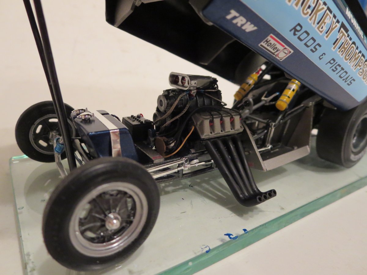 I like testors liquid glue in the sqare bottle for all basic assemblies, its sticks great and really melts plastic good. The orange tubes are not that great, but work good when fresh, they tend to get stringy and hard to work with if over 6months old. For windows and clear parts nothing works better than Micoscale brand "crystal clear" avail at most hobby shops. paints were all done with spraybomb laquer duplicolor from local autoparts store. easy to buff to a good shine, used a good krylon primer under it to stop plastic meltdown. Decals on Glidden car are lazer copies as the old originals glue had gone bad, 35 year old kit! the funnies are Johan originals with Slicks and Cady decals Just finished another few drag cars. Long winters in canada eh!