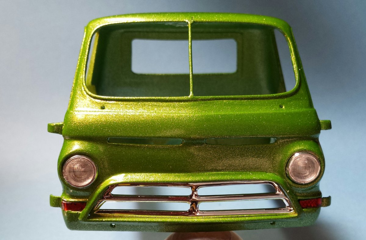 'Lil Red Wagon A100 Side vent frame scribed in. Door hinge covers made. Grill surround made. Smaller headlights installed. Wire frame made for windshield opening. Spare tire relocated. Moulded in the backup lights housing. That is all...carry on