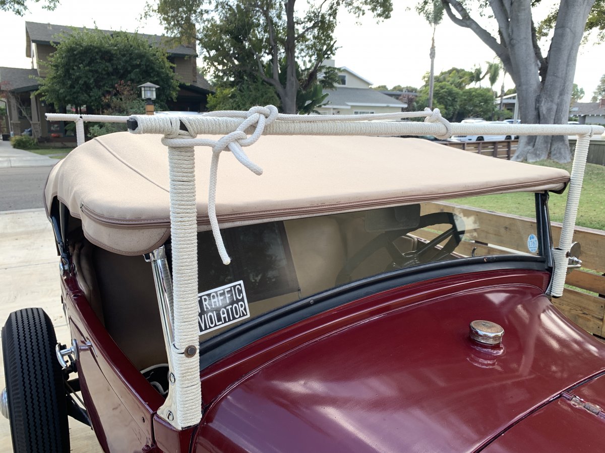 I decided to give my roadster some beach duty. I fabbed up a pair of light duty racks with 1x1/2 rectangle tubing. Held on with hose clamps to the rumble handles and using an existing wing window hole in the windshield stanctions. Since they worked fine, I wrapped them in 1/4 cotton cord to give them a period look. They’ll look better when they get dirty and stained with wax.