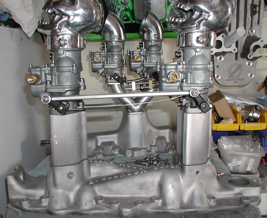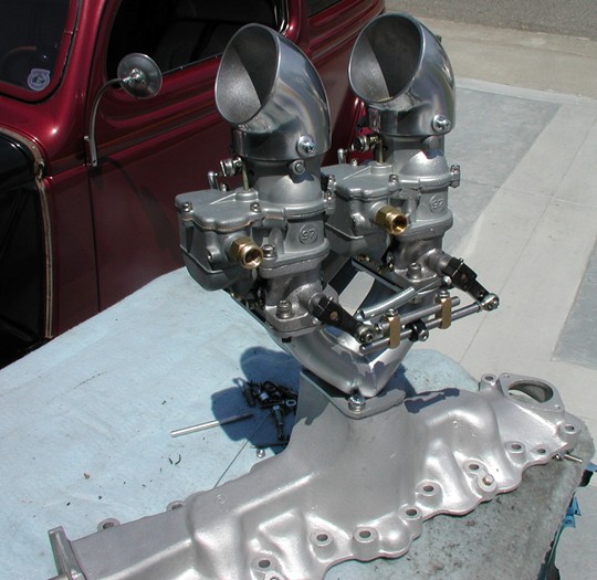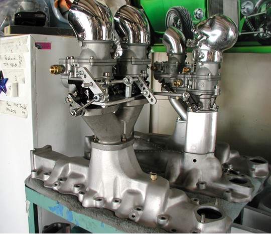 Been spending lots of time building intakes, 97s, 81s and linkage for the Hot Aug. Nights Swap Meet.. Got a few more intakes to build..392 Hemi 4x2 and Dodge Hemi 3x2.. The pictures are Flatheads..(2x2 & 3x2)...Hemi 392..(3x2) and SBC..(4x2).. ..Duane..