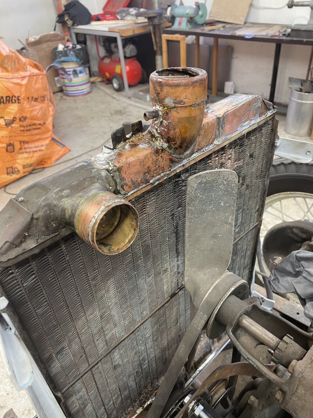 6C991B3D-35BE-40E6-9588-5B63B4D6DF72.jpeg E371C252-D767-4119-926D-842968342139.jpeg A431FB7E-2A46-44FC-9134-C50D1708C332.jpeg E1BFA712-BA1F-45DA-8712-392EC155080D.jpeg 00BC2BD7-23CC-4158-AFB9-E9821B0C286B.jpeg Today I started soldering A little on the radiator. Just a plate (made from an old waterpipe) to cover the old filler neck, thats now in the botom. That went fine and was easier than I thaught, but I’ll guess we will have to see if it’s good enough when I test it under presasure.