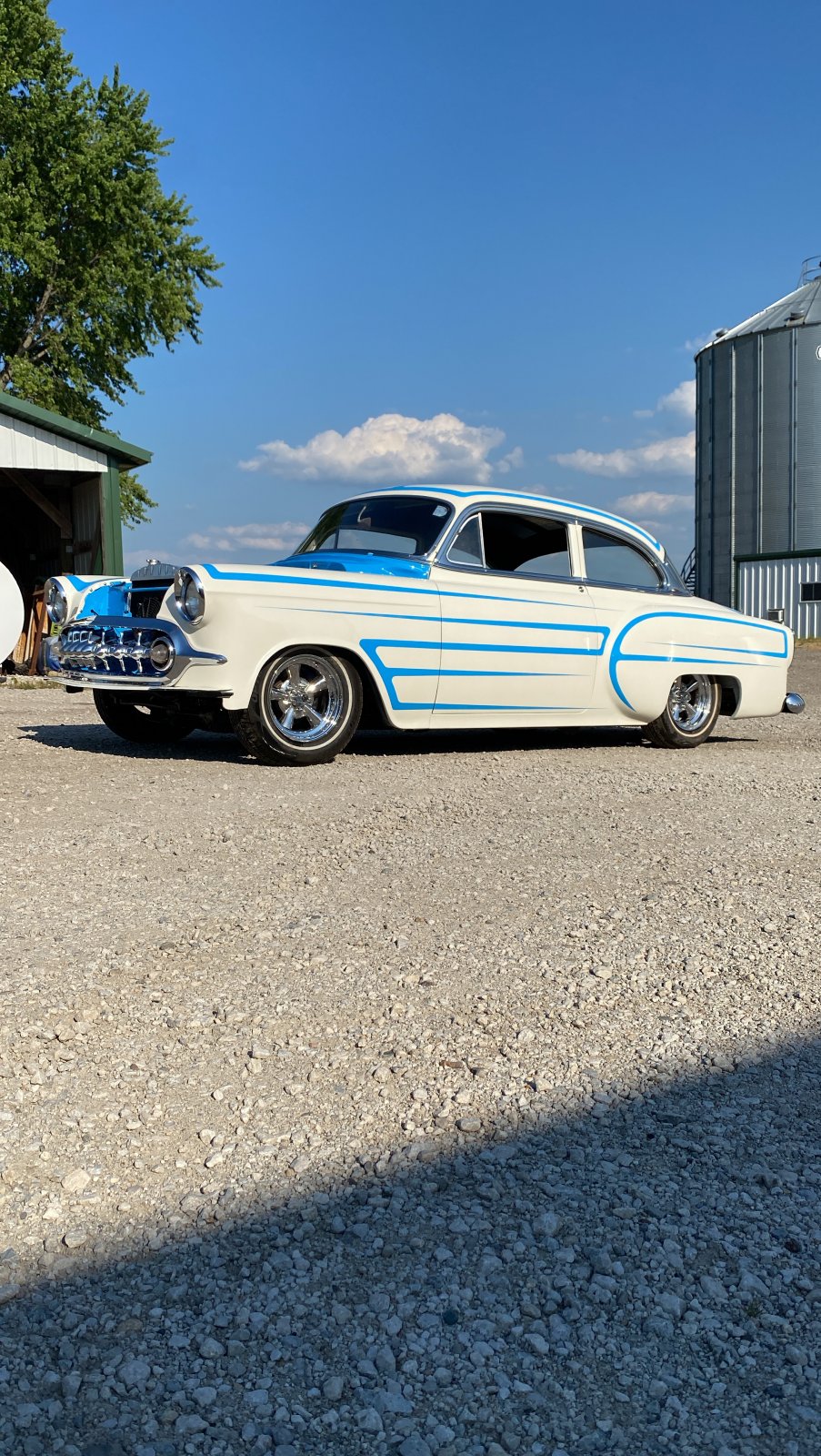 I've always disliked the grille ends on 53 Chevys, this guy has done exactly what I would do to the grille ends.