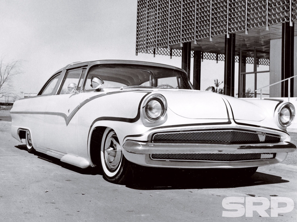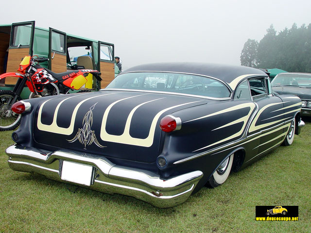 Hello, In high school, our friend bought his first car, a 1951 White Pontiac two door sedan. He wanted a fast car like our other friend’s 57 Bel Air Hardtop and my 58 Impala. But, he settled on a very nice Pontiac sedan. At least, he got a two door so as not to allow comments about driving your dad’s 4 door sedan. Ha! He knew his Pontiac Sedan was not the fastest, but it was a clean sedan, while very reliable for daily use for school and work. But, he always wanted something different. In our auto shop/metal shop classes, we decided to make a floor shift mechanism for his Pontiac transmission. We had access to an old used Hydramatic Transmission and used it in class to get our designs down pat, before we cut into the real car floorboard. He was happy with the design, functionality and being able to put on any curved/straight or combination of lever designs as we made the base interchangeable. Now that he had the only sedan with a floor shift mechanism and, it was different. So hanging around tossing ideas around was something teenagers always came up with for further modifications to their cars. He knew I drew tons of flames on everything from notebooks, class assignments and drawing papers. Our old wagon and bicycles had pinstriped flames that looked ok for a beginner. He wanted to know if we could apply a flame design on his big Pontiac sedan. At first, it was a pinstriped version, and if it looked good, then a full faded paint color job was in the works. The flames looked good on paper, but in real life surfaces, awful. The striping flames stopped at the first fender. Ideas were free and they grew... Jnaki In the end, he did not want to mess up his pristine white paint that he carefully detailed and left it stock. So the only thing we did was the stick shift lever. But the idea of scallops instead of flames seemed easier and a more simplistic design. YRMV A similar look for a friend's 1951 Pontiac Sedan...his first car in high school.