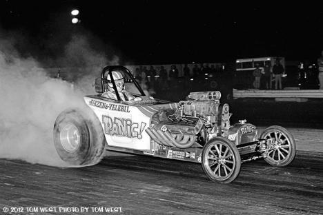 " Hicks & Conway" Owned by Don Hicks & Conway from Crows Landing, California. A nice roadster Lou Sattelmaier 32 Ford coupe Injected FE ford power Unusual being a coupe and FE Ford powered one of the few I can find "O***** Stauffer" dual quad FE power can't see where it could have been competitive "Panic" Owned by Gary Hazen & Don Wilson from El Monte. A few LOL Nice nighttime shot