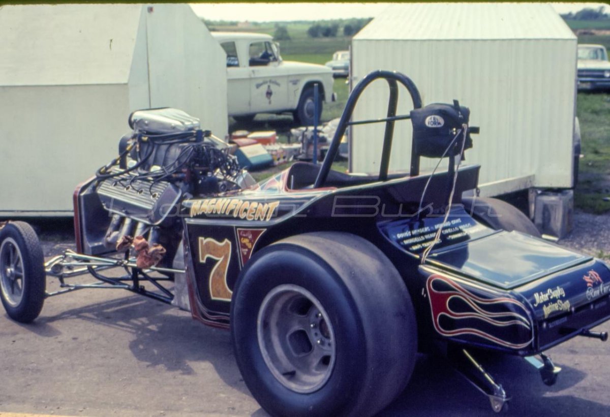 Jack Ditmars out of Illinois. Read his story here: http://www.home.earthlink.net/~mikebridgeman/history.html Also note George "Bushmaster" Schreiber's Yellow Fang trailer in the background. The photo is by Darwin Bush who shot a lot at Cordova, Great Lakes etc. The photos above of Gabby Bleeker and the Magnificent 7 are also from his archives and were brought to the web by the Bangshift crew. Roo