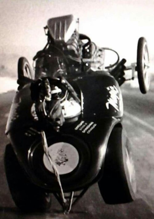 This is not an altered but rather the Marjama family's Marco Sandblasting AA/C out of Minneapolis that ran in the high 8's with its gas burning small block. Son Gary went on to start the Pro Jack business that makes the hydraulic quick lift jacks used by the majority of the pro drag race teams. Roo