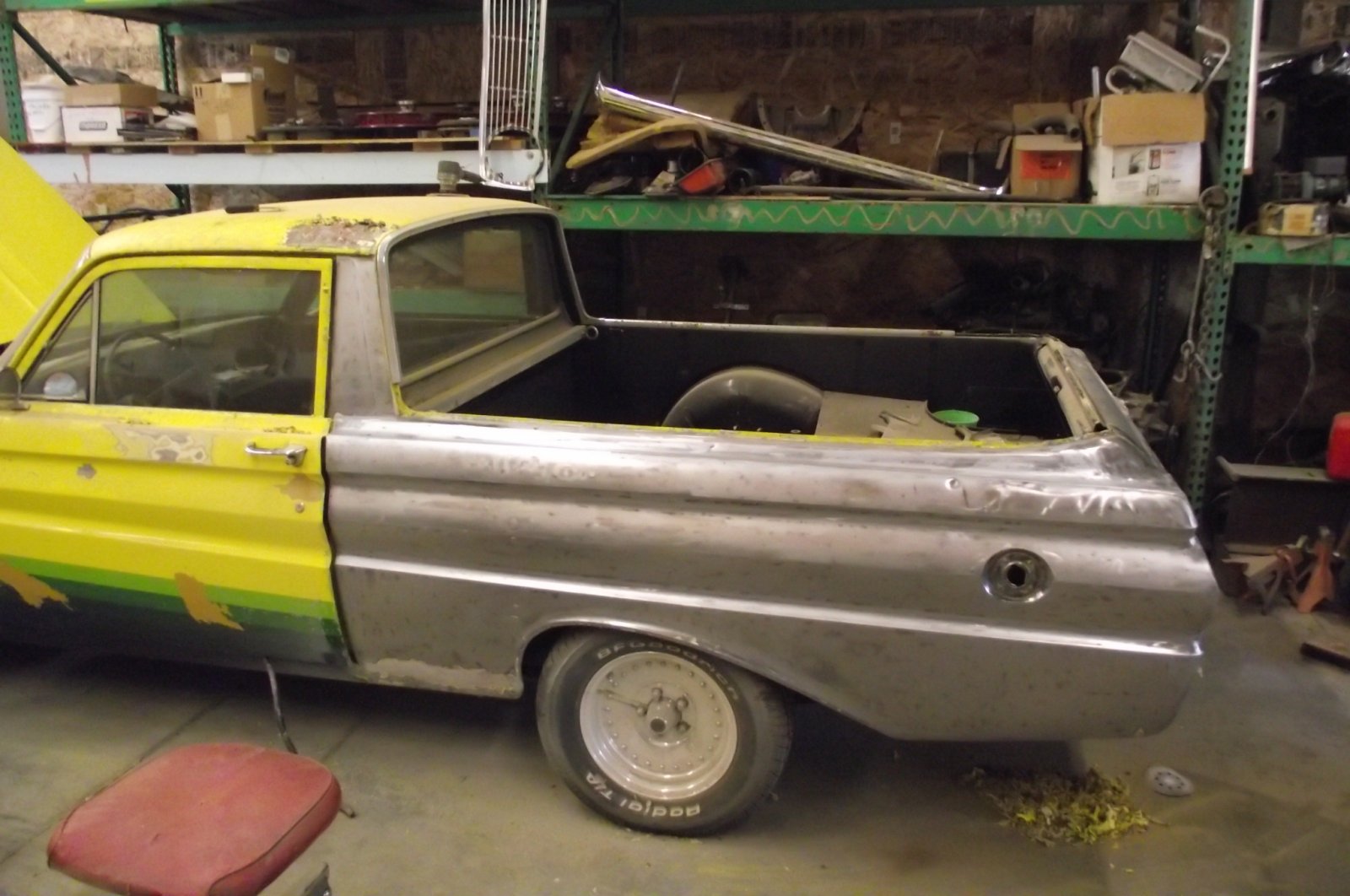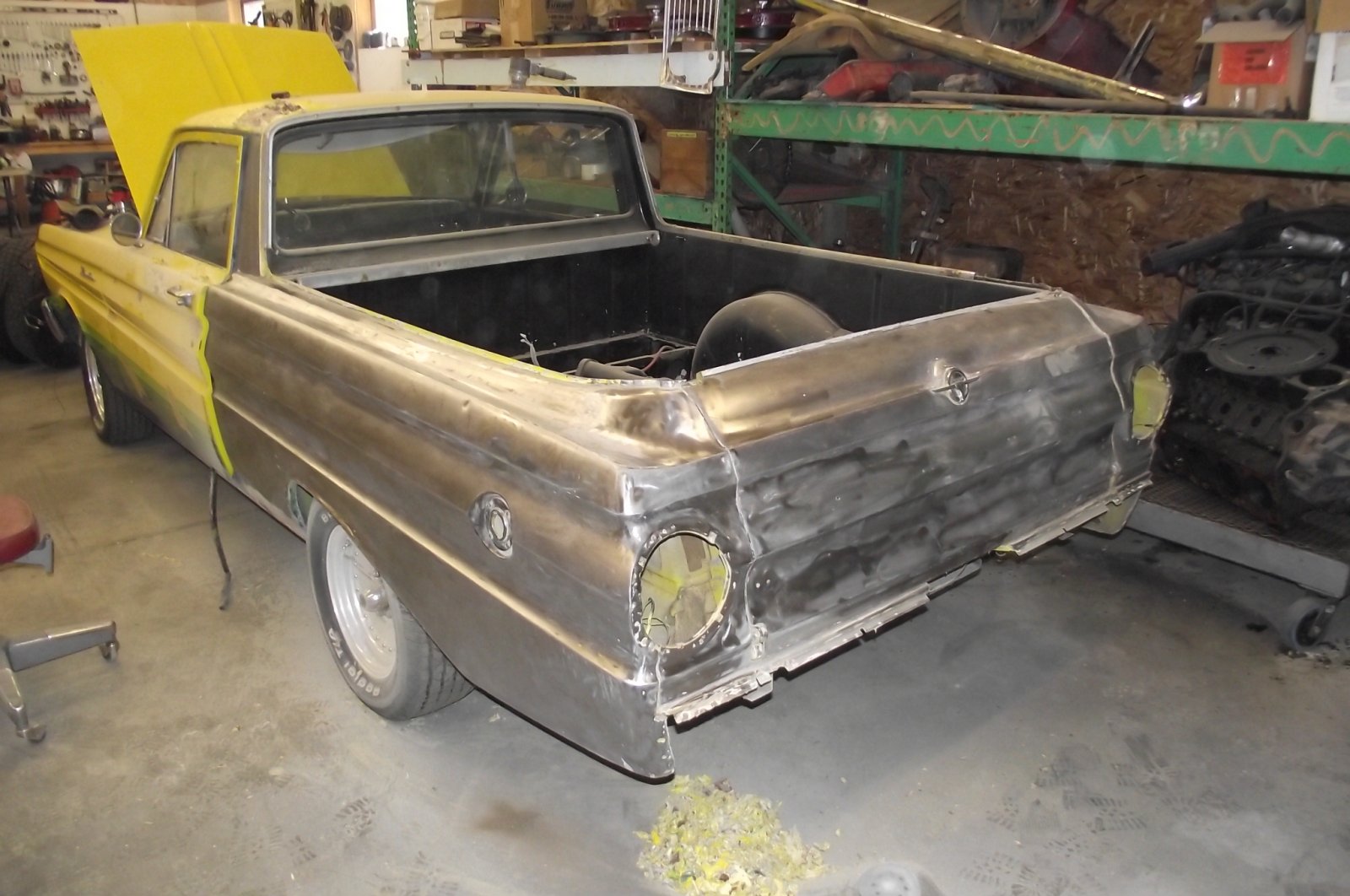 Cool little Ranchero.. Just picked up a 64 Hardtop myself.. I really like the 64/65 body styles.. Your doing a fine job on yours.. Can't wait to see it painted...