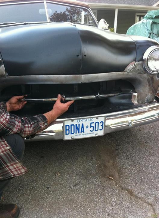 Just found this thread. Really nice job on the grille shell, especially with you working in the driveway outside! I would love to have the talent and skills to do body work like that. I have zero and have to find someone to do just about anything on my '51. I'm pretty much limited to bolt on's and paint. On that '51 that Street Rodder did....if you had to farm out the things they did, that car would cost more than 100 grand! On top of that it still missed the boat in several areas, especially on the grill, you can still see so much of the radiator and fans behind it you miss seeing the tiny chrome bar. I will try installing a 54 Chevy with extra teeth in mine this winter, so I will have a perfect original '51 grill to sell to help pay for the Chevy replacement. I know that the '54 Chevy swap is as common as dirt, but it won't require any body work. I really like the skirts you modified, I agree that the 3 rib skirts don't work at all and the cutdown Merc skirts can look a little big sometimes. Do you leave the car out in the winter weather? Anyway keep up the good work and posting updates.