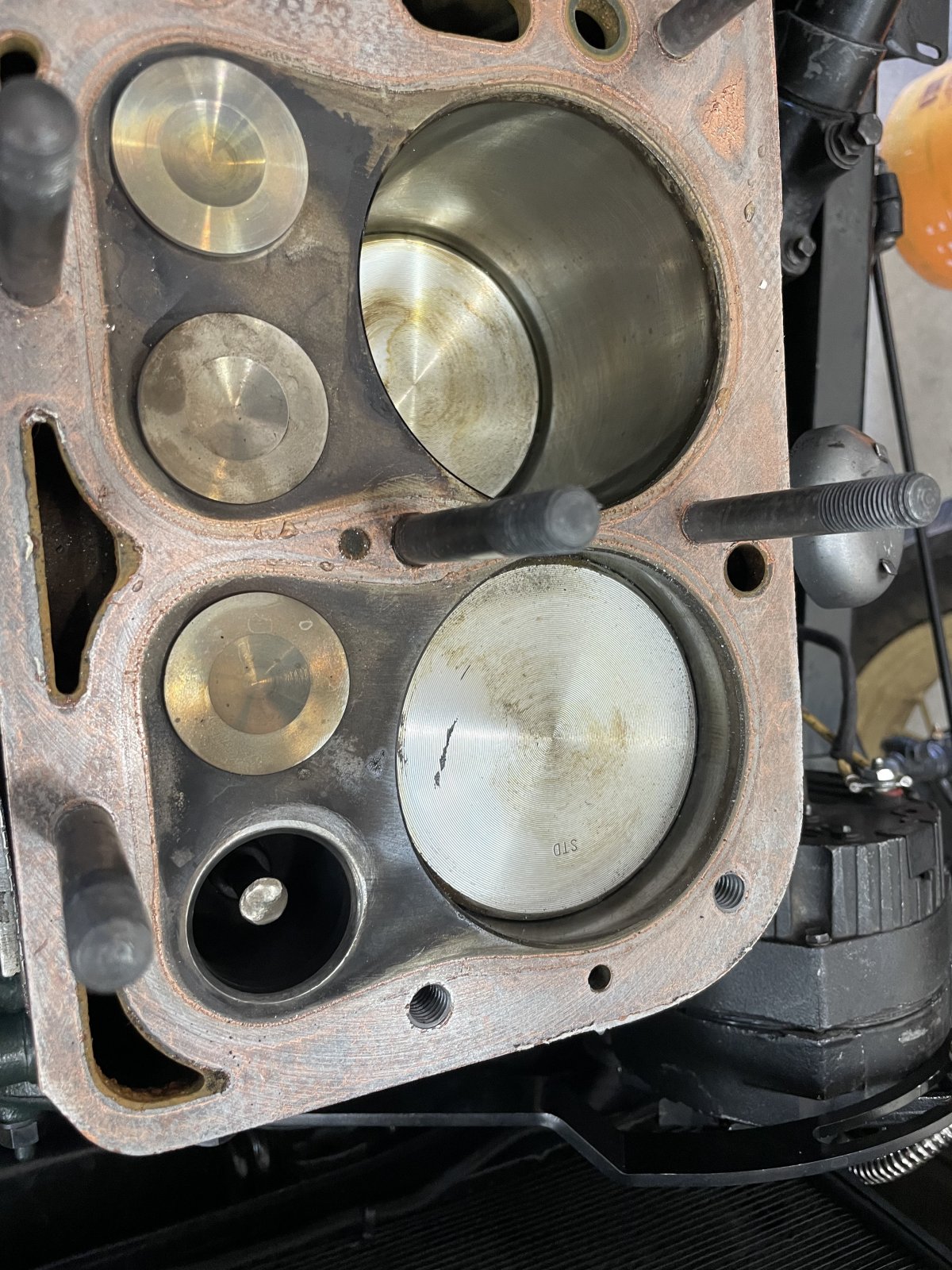 Exhaust valves were hitting the radius in the aluminum head’s combustion chamber. On first start up, I couldn’t hear it, the engine was running smooth as can be. Let the engine warm up and cool. Re torqued the head nuts to 55 lb*ft after it cooled and took her out. Wow she ran great with tons of power for about 20 minutes until she didn’t. Limped around the corner and started diagnosing. Cyl 1 was producing much less compression than the rest so I pulled the head. That’s when I discovered the exhaust valve snapped below the taper! Not only did it snap but it beat the crap out of the valve seat as well. Turns out the 1,2 and 4 exhaust valves were making contact with the head. I’m now trying to figure out what the next steps are. I really don’t want to pull the motor but I may just have to. Looking at Neway seat cutters to possibly try to salvage the seat but would like to hear some opinions. There’s about a 1/32” gap from the seat to a new valve that needs to be cleaned up. Really disappointed that a “bolt on” head created this much trouble. 6C16C317-13E0-4AFA-A1D7-D4C2FB026382.jpeg C0CACFF2-4523-4EA2-A4A2-86EFADD17F3D.jpeg E7FFF428-2694-4C76-94D7-5453865FCAD9.jpeg 8B443BB8-F7EB-48E6-907E-CF7A8F885B3D.jpeg C77AE35F-4AFE-4AEB-995D-FCD9509392A9.jpeg