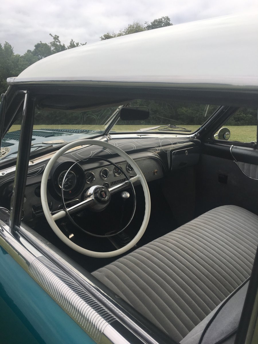 Here is my freashly finished mild kustom, 51 Ford Victoria. Nosed, decked, shaved handles, peaked and louvered hood, smoothed 50 bumpers, frenched headlights, 54 chevy grill, static drop and caddy hubcaps wrapped in 6.70-15s.