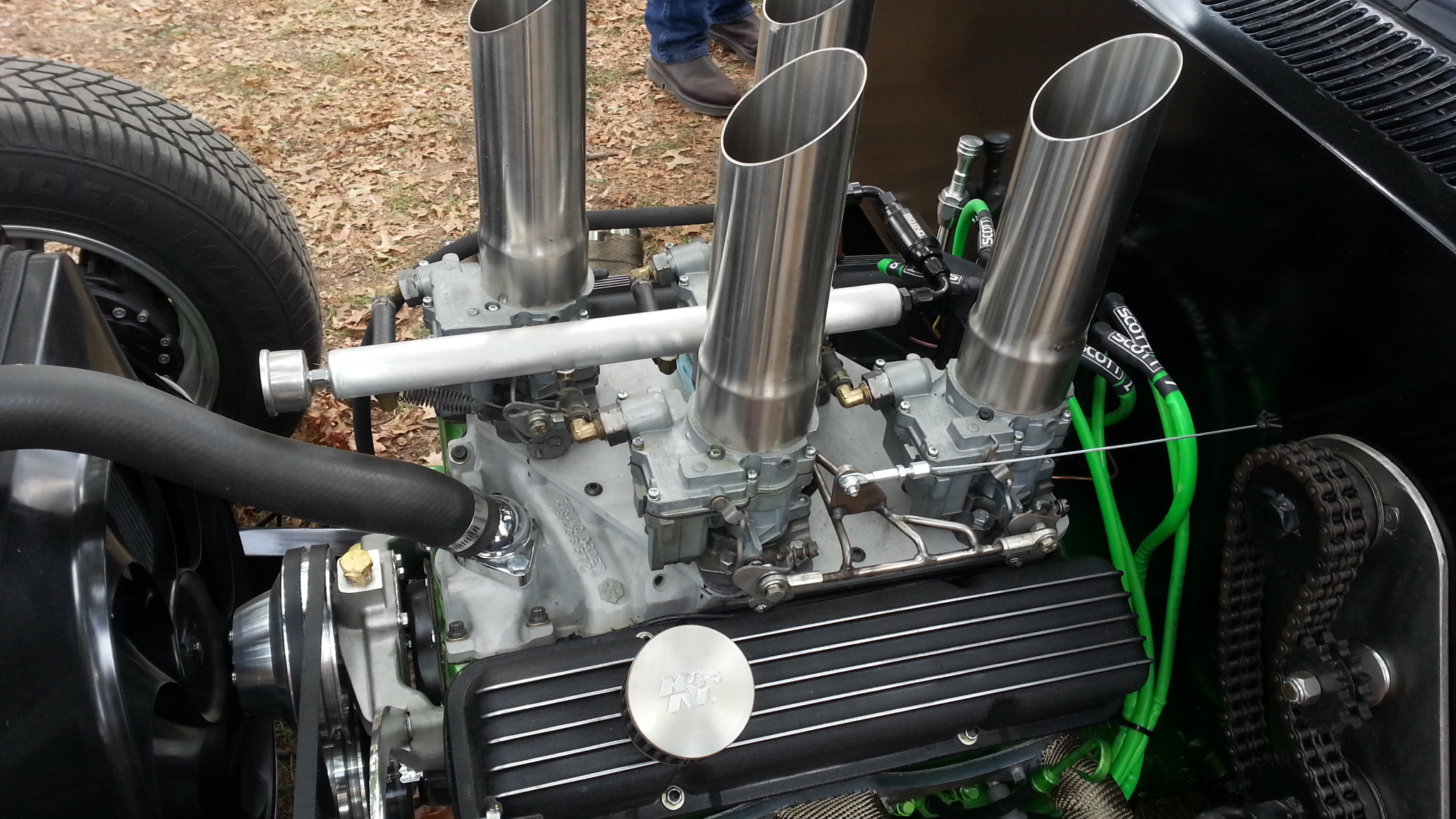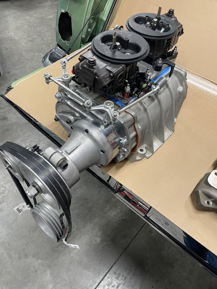 I put a little thought into mine. I ran this on my 360 inch small block Chevy in my 65 Chevelle. I sold it later at a swap meet and maybe a year or so later I seen it on this truck in a car show.