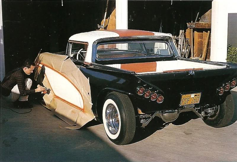 I did a search for 'ranchero convertible' and one of the first ones that came up was a red '58. I won't post it here because it has awful wheels and side mirrors that are not what the HAMB was built for. It might've even been pro-street ... But honestly, at a glance, it looked like just another '58 Retractable with the top down. If I wasn't sure I had the skills, I wouldn't tackle something like a top removal and all the details that will surely follow. Seems like an easy way to mess up a good car. I'm all for changing tail lights for the sake of improvement. That's kustomizing 101, but I cannot picture a '59 Pontiac tail light that is V shaped. They were all enlongated, depending on the model, 2 bulbs or 3.
