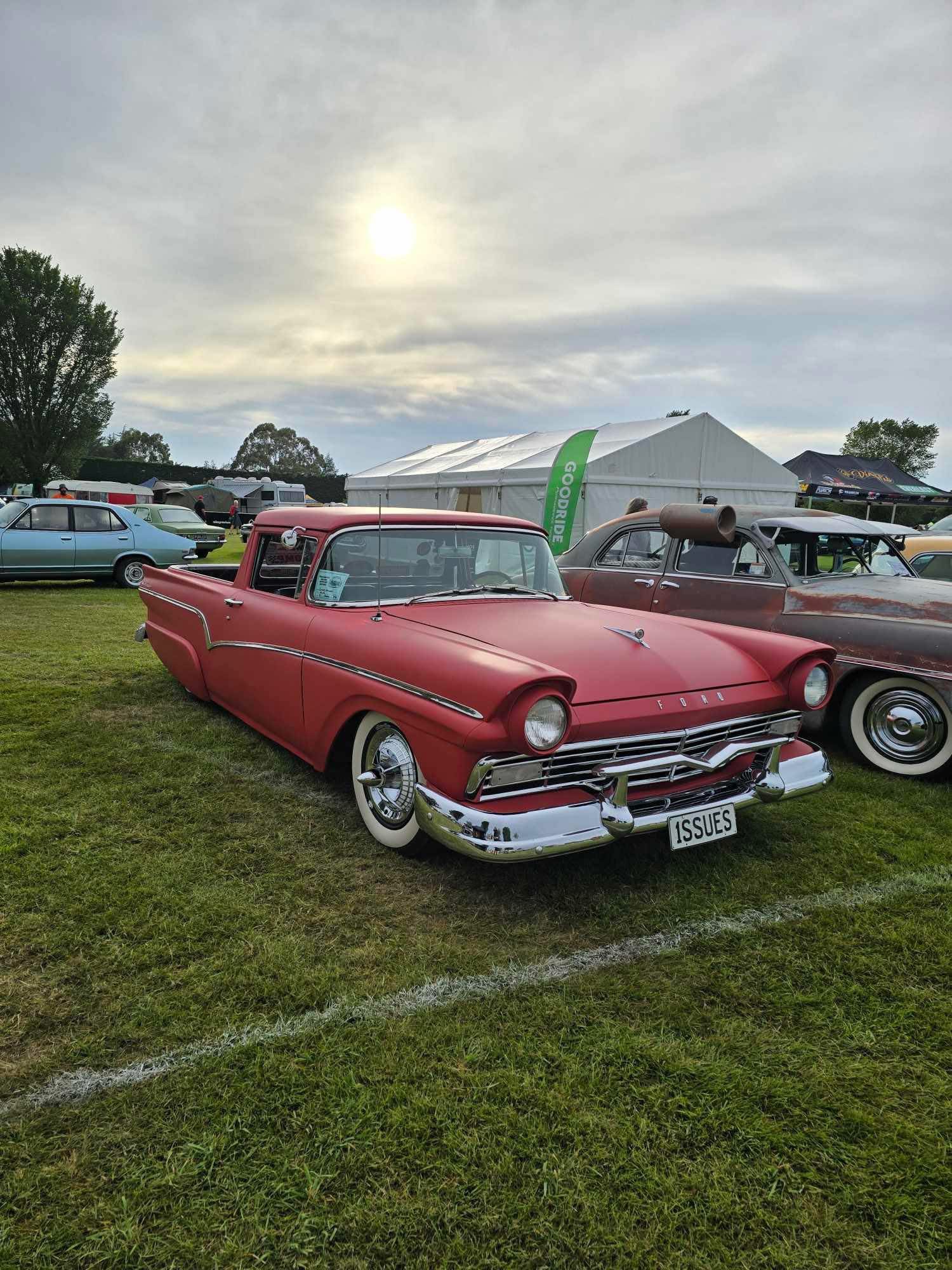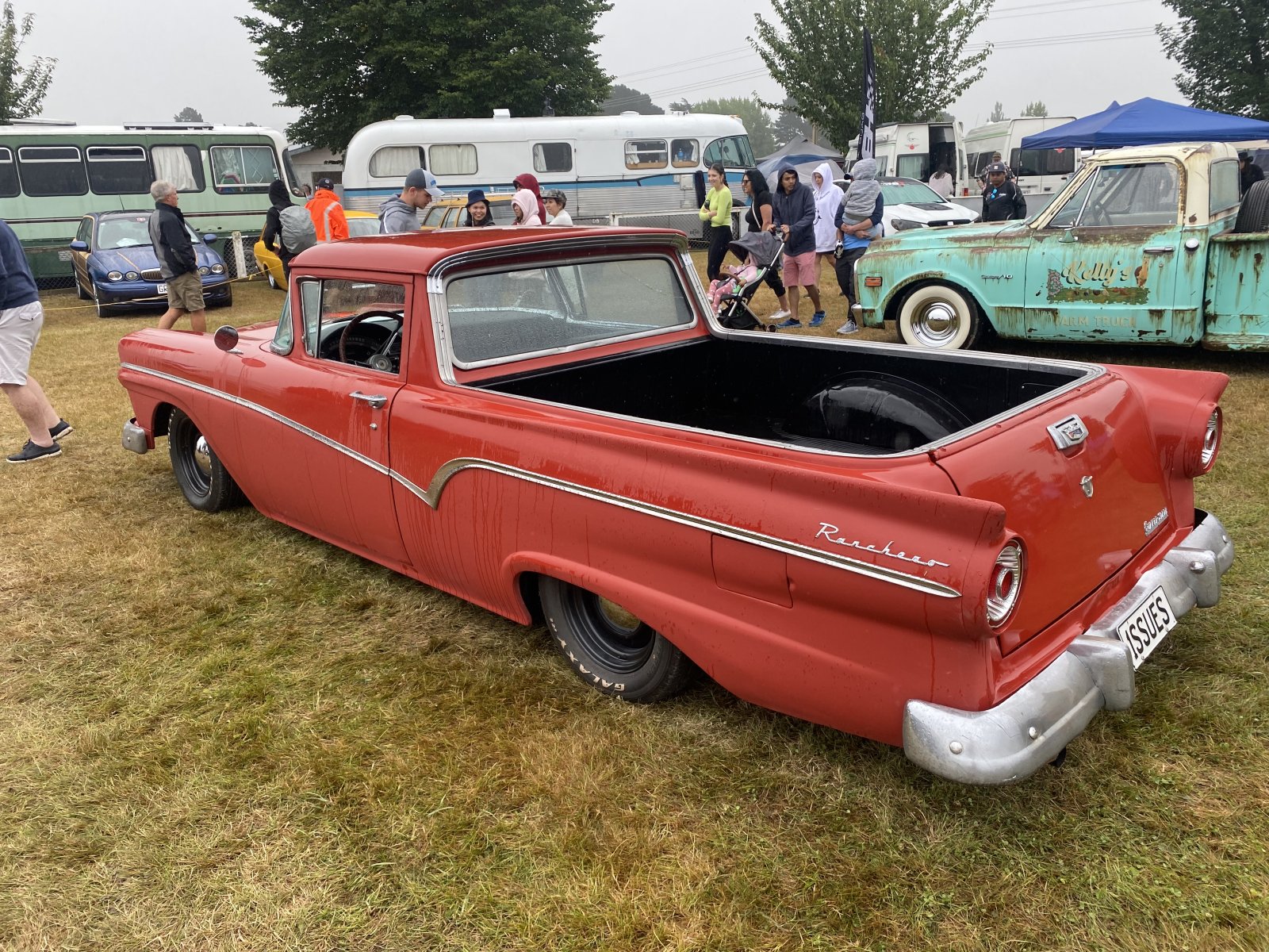 So this isn’t exactly your traditional kustom ranchero… Word is it’s on a vintage army spec chassis with flat head 4 cylinder, speed would not be its friend. Not sure if it is still round