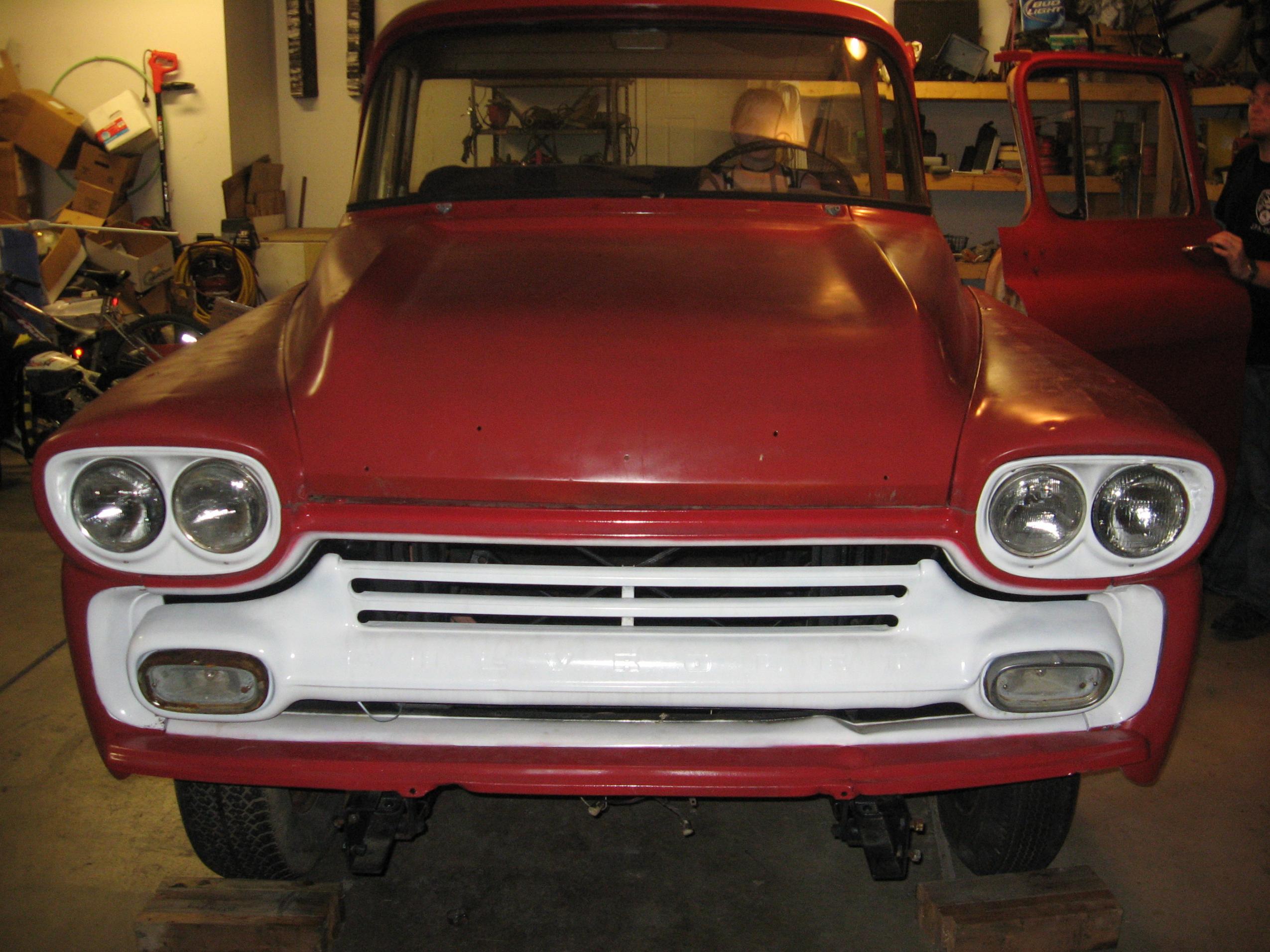 Gonna look pretty blunt nosed with that hood. May want to try a 47 olds grill?