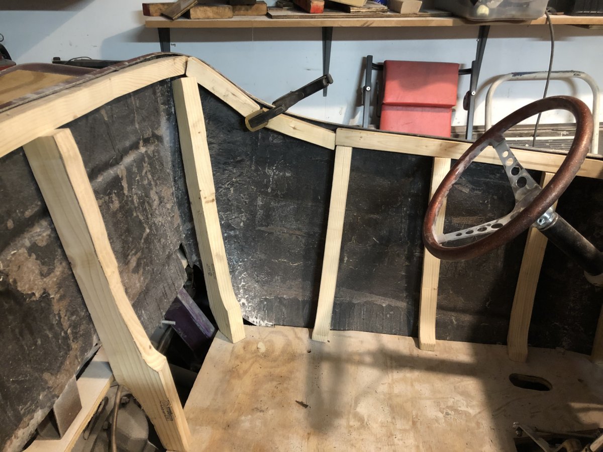 Looking good, brings back a lot of memories building mine, I used all marine wood and epoxies I got from the local boat builder supply warehouse and it's been holding up great for the last 15 years. I also made a metal tie bar behind the dash with plates welded on the ends, it sandwiched the body between it and the windshield posts, my theory was to support the windshield and prevent cracks in the body. As I get older and more physically challenged I wish I would've put working doors on mine, sure is a fun car though. Good luck with yours.
