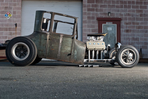 Has radical good proportions like a late 60's show rod, with period fueler engine. I like the top tall.
