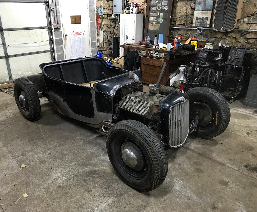 I just recently picked this all steel t bucket on a modified A frame with steering and the 4 wheels for $500.00. It sat up in a guys woods. Possibly an old '80's hot rod. I added the keg for mock up.