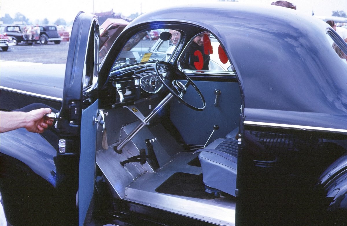 If the paging is for the red primer Willys...Thanks for the possible link photo. The grille is different. We had the 40 dual grille. But, the look could have been the next step in our progression towards the 1960 U.S. Nationals, if we ran out of time for painting and full upholstery. But those wheels and new M&H slicks were what was sitting in a friend's garage in Los Angeles, when I called to tell him to cancel the order and/or send them back. (In September, 1960.)