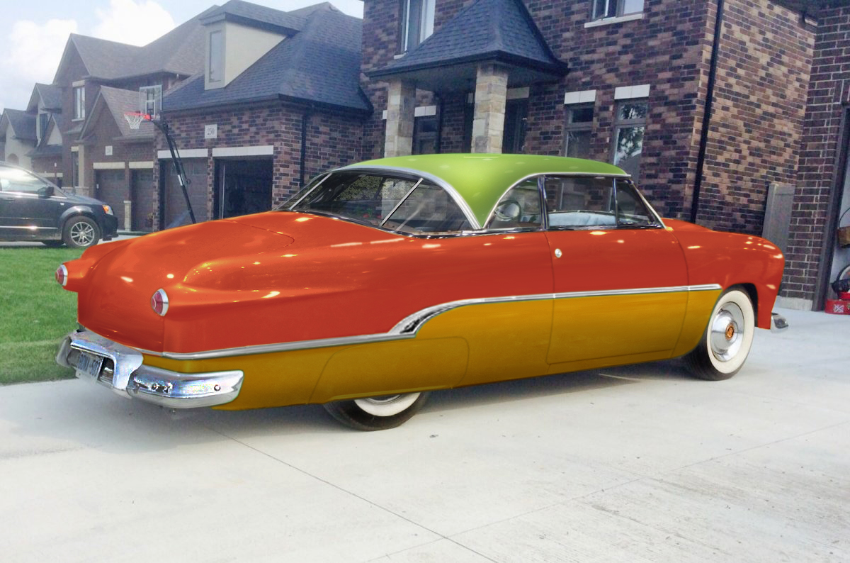 I usually am not a two tone guy, but this should be two tone. That green looks great but with the interior colors maybe a cream top with gold/bronze bottom. If the interior was not done then roddin-shack would have it with that red on the bottom.