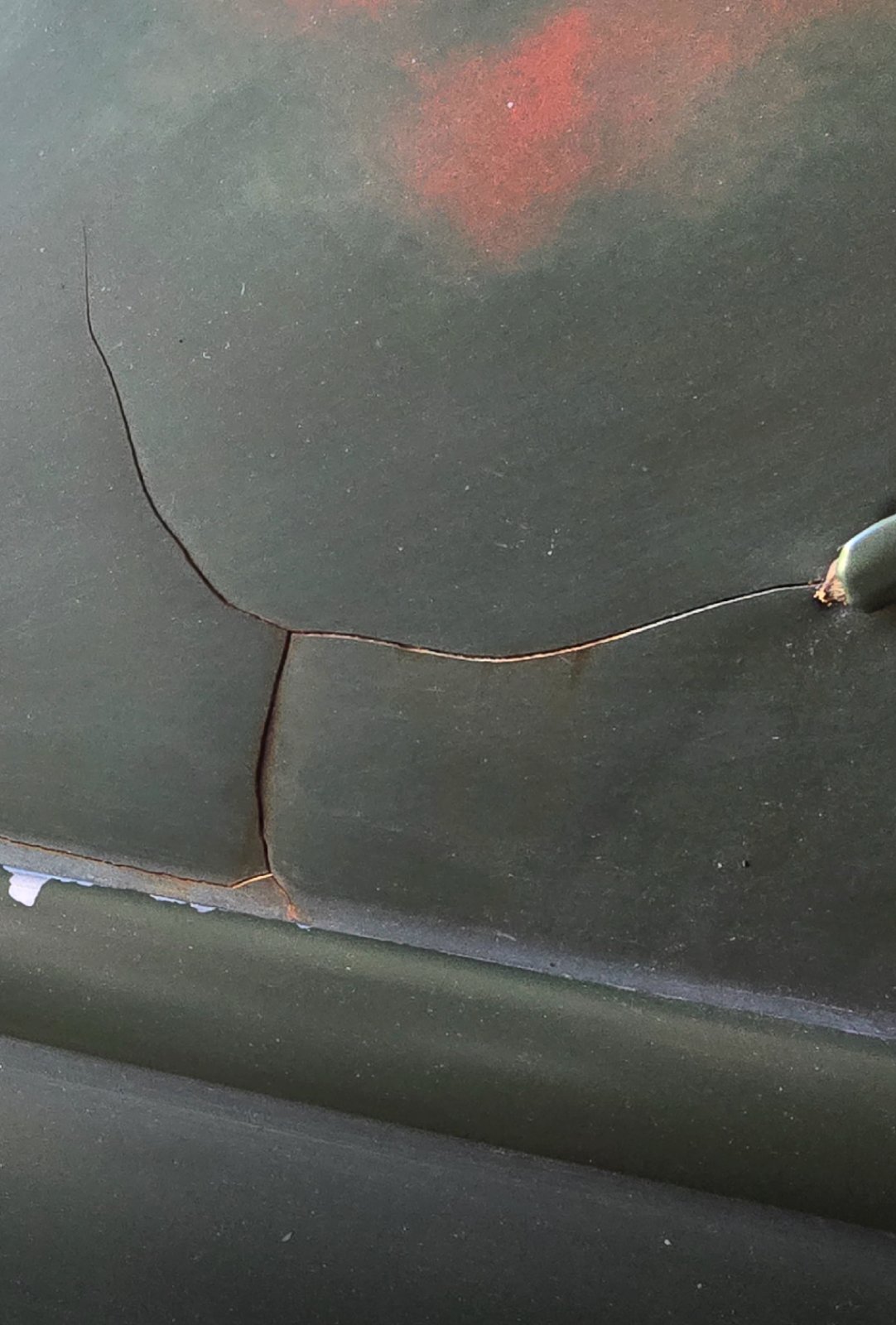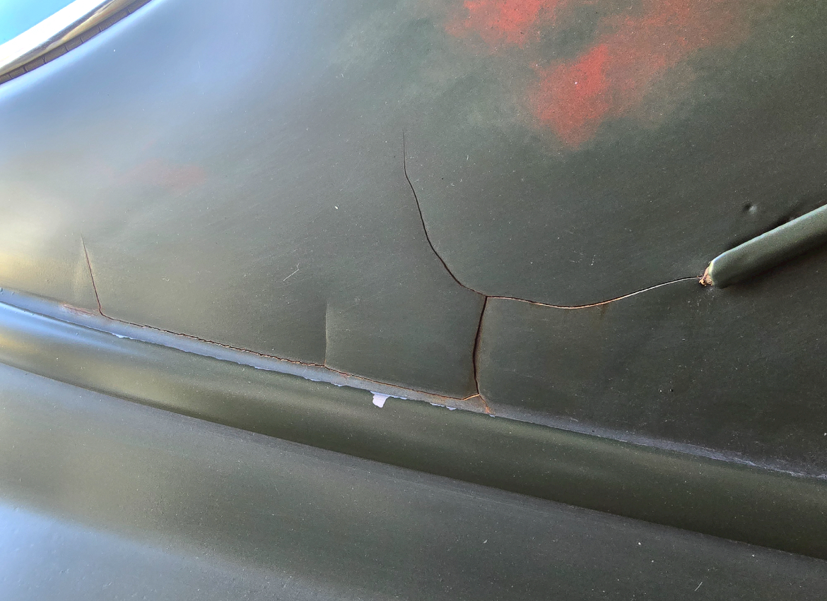 What about what looks like enormous cracks in the sail panel area with rust coming out of them? Those kind of cracks are usually caused by the bondo being way too thick