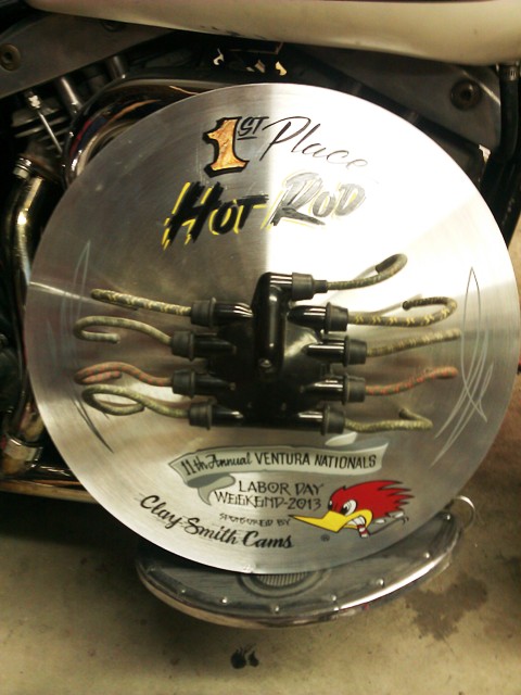 I gave my best hot rod trophy at ventura nats to ruben of the barons for his awesome red 31 coupe. hope to get my car in that mag someday. p.s that cap and wires are off my calori roadster. billy