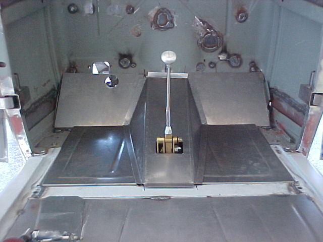 got a little more done on the sedan: top wood kit installed and rolled it outside to clean garage. and got the front floor started: did mock up for Trans Hump: and trans unit made, just need to weld in gaining on it... thanks for looking, Dave L.