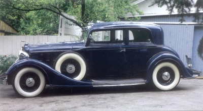 We have a winner. Not as big a car as I thought, couldn't get through the cobwebs of my brain, but Warren Beatty and Faye Dunaway barely escaped the local law ambush in the movie "Bonnie and Clyde", having used one as a getaway car. 1933 Hupmobile Model K Victoria: