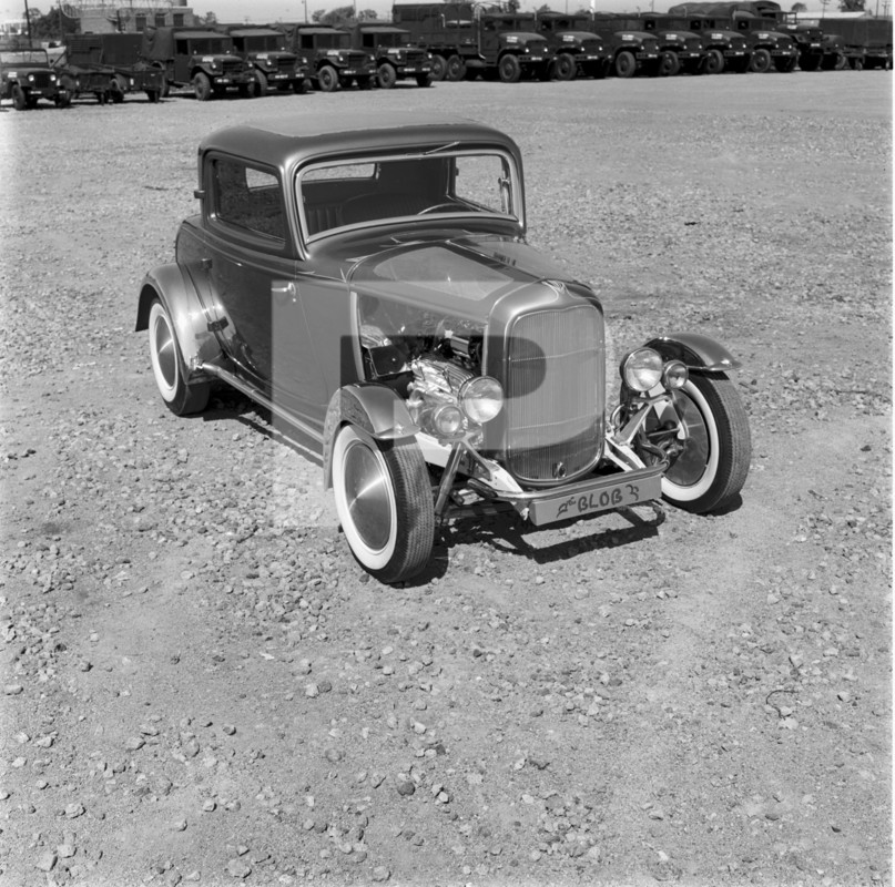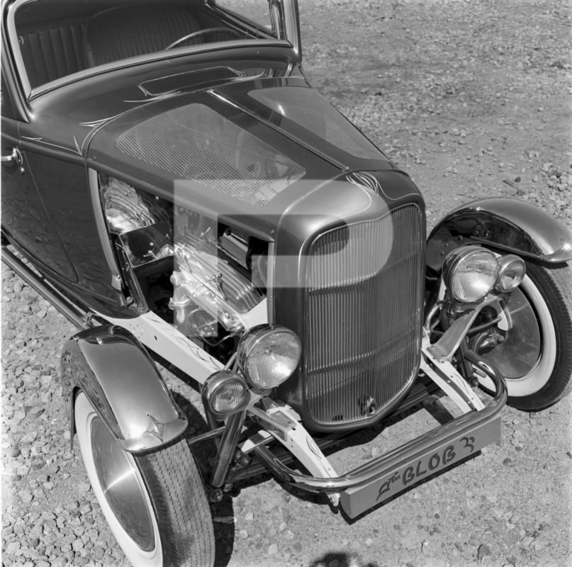 29. This is the Howard Leever and Fred Esser Bonnevile roadster. They were members of the San Francisco Ramblers car club, as well as was Joe Carlomagno who's 1932 Ford 3 window that is in the background. Joe's coupe is painted Palamino Buff ( tan ) and it was striped by "Tommy The Greek" IIRC ,Joe lives in Mill Valley and has a full fendered 1932 Ford roadster. Joe was my mentor as I lived across the street from him on Green Street in San Francisco.